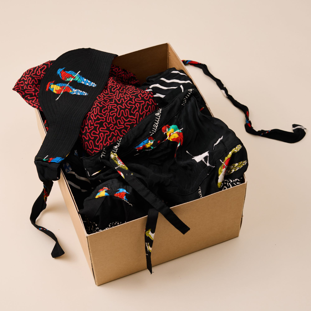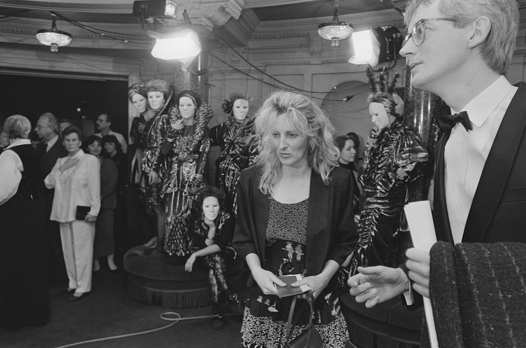 Inmiddels ligt dit ensemble opgevouwen in een doos in het depot. Het is een top met een rok, en een bijpassende riem. In twee van de drie stukken zit nog een ‘ridderspoor’ – het plastic haakje waaraan het prijskaartje hing. ‘Made for you by Paula & Mopitz Ibiza’ staat op het label, een merk uit de jaren zeventig dat algauw een cultstatus kreeg. De kleding ademt de hippiesfeer van Ibiza. Misschien viel De Loo’s outfit – hoewel overwegend zwart – daarom op tussen de rest van zwartgekleed, schrijvend Nederland.