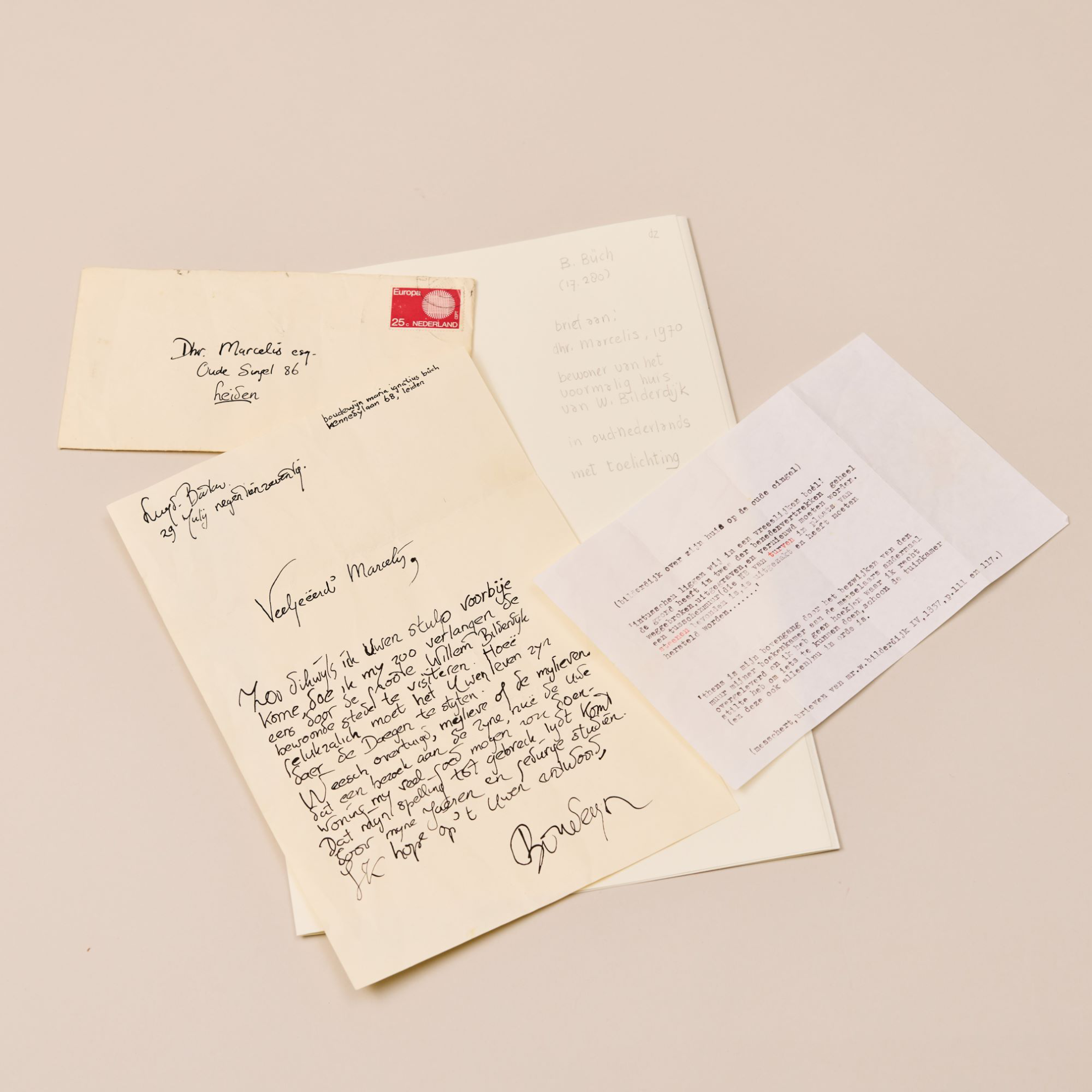 ‘Mijn ouders woonden in een huis waar Bilderdijk heeft gewoond. In 1979 heeft Boudewijn Büch een brief naar mijn vader gestuurd. Heeft u interesse in het origineel?’ Na een enthousiaste reactie werd de brief persoonlijk langsgebracht. Büch heeft het briefje geschreven in de achttiende-eeuwse verteltrant van Bilderdijk: