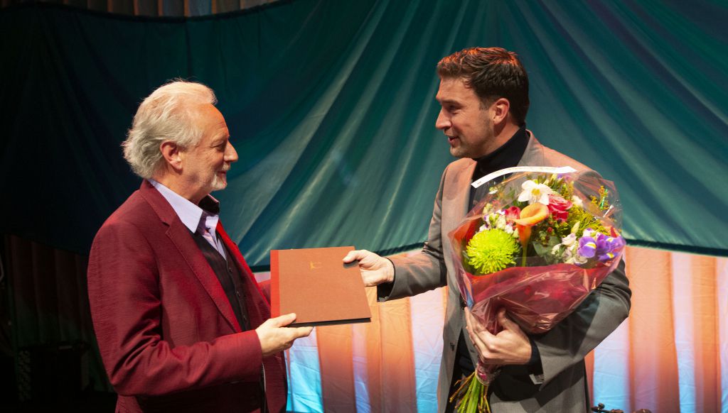 Stefan Hertmans ontvangt de Constantijn Huygens-prijs in Den Haag. Foto: Ser Ligtenberg