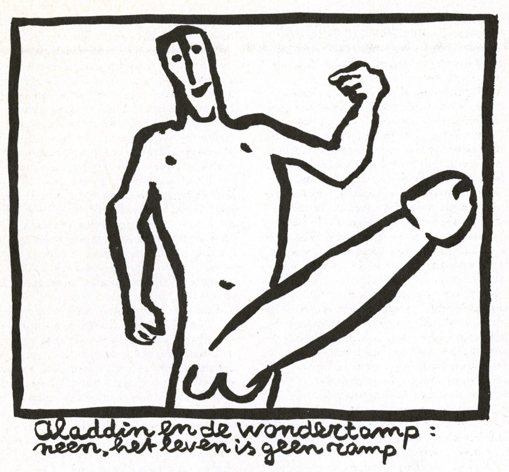 Van de geruchten bleek niets gelogen: Aladdin, die zich prompt aan haar paleisdeur meldde, bezat inderdaad een wonderbaarlijke tamp. Prachtig gevormd en zo lang als haar onderarm. Een tamp die stuiterde als ze hem aanhaalde. En wanneer de prinses erover wreef, bruiste er een witte geest tevoorschijn en zei Aladdin: ik doe alles wat je zegt! Alles wat je maar wilt! Liefje, doe een wens en ik vervul hem. Laat me je vervullen, laat me je vullen.