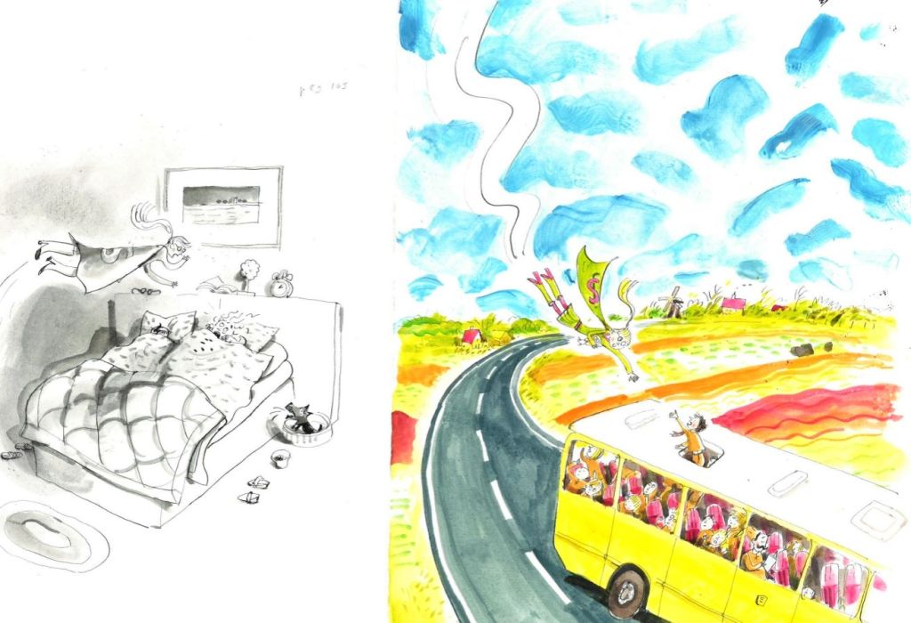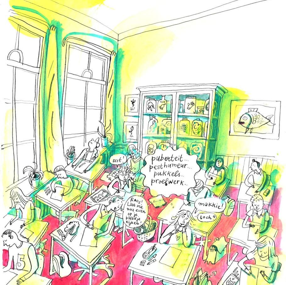Maar hoe brengt Schaap verhalen door middel van illustraties eigenlijk tot leven? Vandaag richt ik mij in het archief op schetsen en de uiteindelijke illustraties die zij maakte voor boeken van andere schrijvers. Ik focus, met andere woorden, op Annet Schaap als illustrator. Toen ik mijn moeder vertelde dat ik bezig was met dit stuk (dat u nu leest), nam ze me mee naar mijn oude slaapkamer en wees naar de boekenkast. ‘Zij tekende jullie jeugd,’ zei ze erbij.