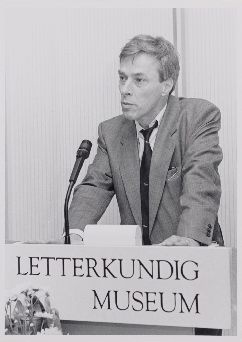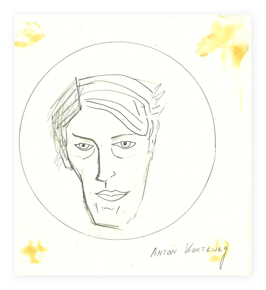 Er liggen plakboeken en aantekeningenblaadjes klaar. Naar aanleiding van mijn komst is Anton Korteweg, dichter en voormalig directeur van het Literatuurmuseum, de afgelopen dagen alvast zijn privéarchief ingedoken. ‘Het zoeken duurt bij mij tegenwoordig lang,’ zegt hij, ‘ook omdat ik zo slecht ter been ben. Dus ik dacht: handig om dingen zelf bij elkaar te vinden.’ Even later, nog voor ik mijn jas heb uitgetrokken, zegt de tachtigjarige Korteweg: ‘Ik zie mijn portret nog goed voor me.’ Hij tekende zichzelf als drieëndertigjarige met een serieus, peinzend gezicht: heldere kaaklijnen, zijn haar in een keurige scheiding. ‘Maar het boekje met die Revisor-portretten lag ergens heel hoog in mijn kast, daar kon ik niet bij.’ Op zijn verzoek laat ik hem zijn zelfportret zien. ‘Ja, dat ben ik, dat zie ik wel, ja.’ Uiterlijk lijkt hij zelfs weinig veranderd, de contouren van zijn gezicht en kapsel zijn in elk geval hetzelfde gebleven. ‘Echt, meen je dat?’ vraagt hij enigszins ongelovig. ‘Wat fijn om te horen.’
