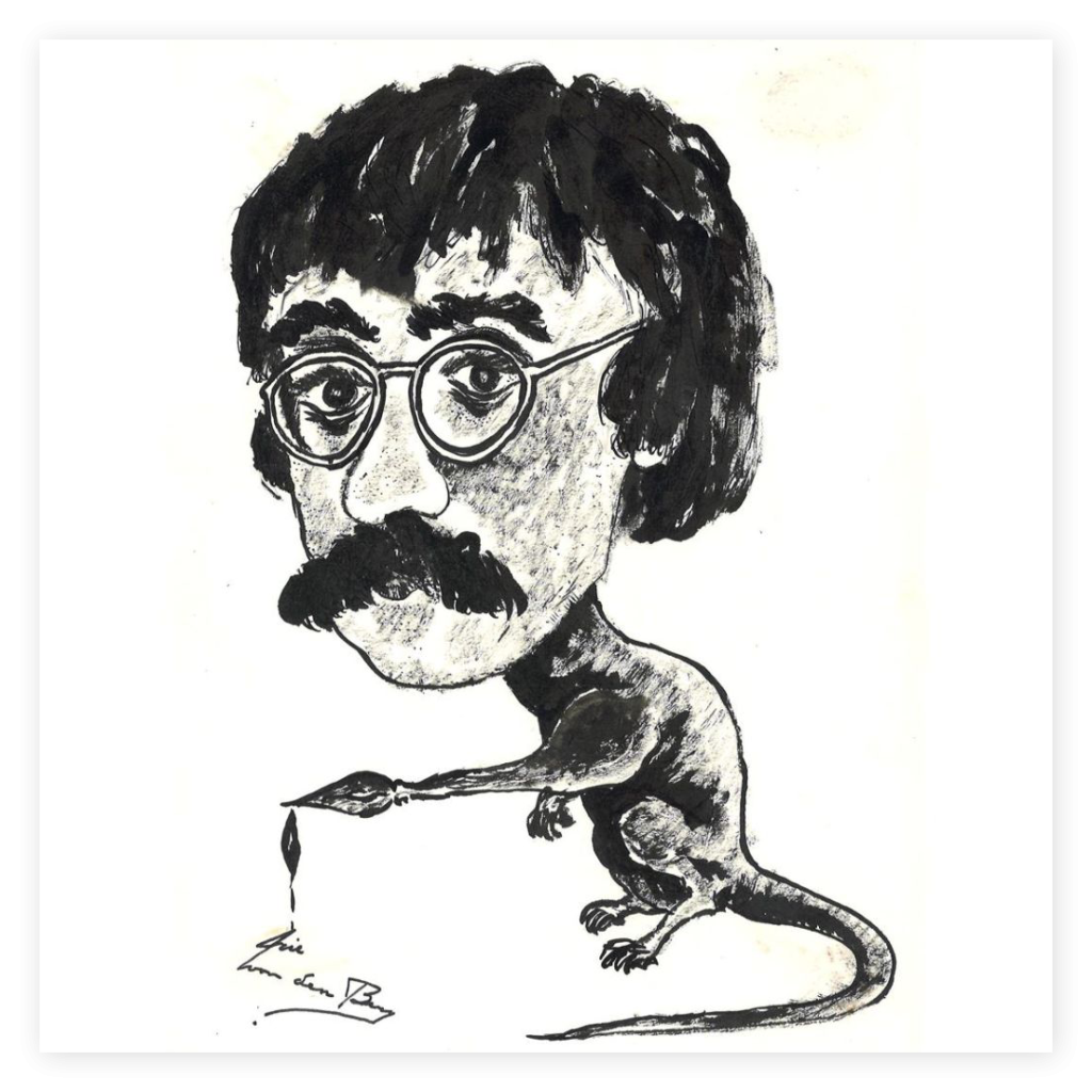 Arie van den Berg leeft al decennia in afzondering. De dichter, essayist en criticus die zichzelf in 1977 tekende met een groot hoofd en daaronder een muizenlichaam, woont weliswaar midden in Amsterdam, maar leeft beschut. Zijn huis, dat bestaat uit drie vrij donkere kamers, ligt aan een hofje dat vanaf de straat onzichtbaar is. Online is er niet zoveel van hem te vinden. Geen contactinformatie, geen website, en maar een paar foto’s. Via via achterhaalde ik enkele weken geleden zijn mailadres. Toen ik me bij hem meldde kwam er vrijwel direct antwoord: ‘Je vraag verbaast me. Ik zie mezelf allang niet meer als een deel van de vaderlandse literatuur.’ Kort daarna belden we. Hij had een longontsteking, zei hij hoestend. ‘Dit zijn van die dagen waarop ik denk: word ik ooit nog beter?’