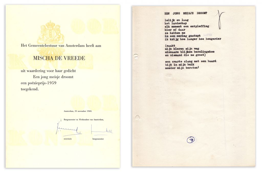 De literaire carrière van Mischa de Vreede begon met poëzie. Eigenlijk al van vóórdat ze zelf dichter was; er zijn schriftjes bewaard gebleven waarin ze gedichten overschreef, van Gezelle tot J.W. Holsbergen. Maar ze wist al dat ze zou gaan schrijven en ze koos een pseudoniem. Toen ze met het schriftje begon, schreef ze er nog haar echte naam op, Henny de Vreede, maar dat corrigeerde ze later.