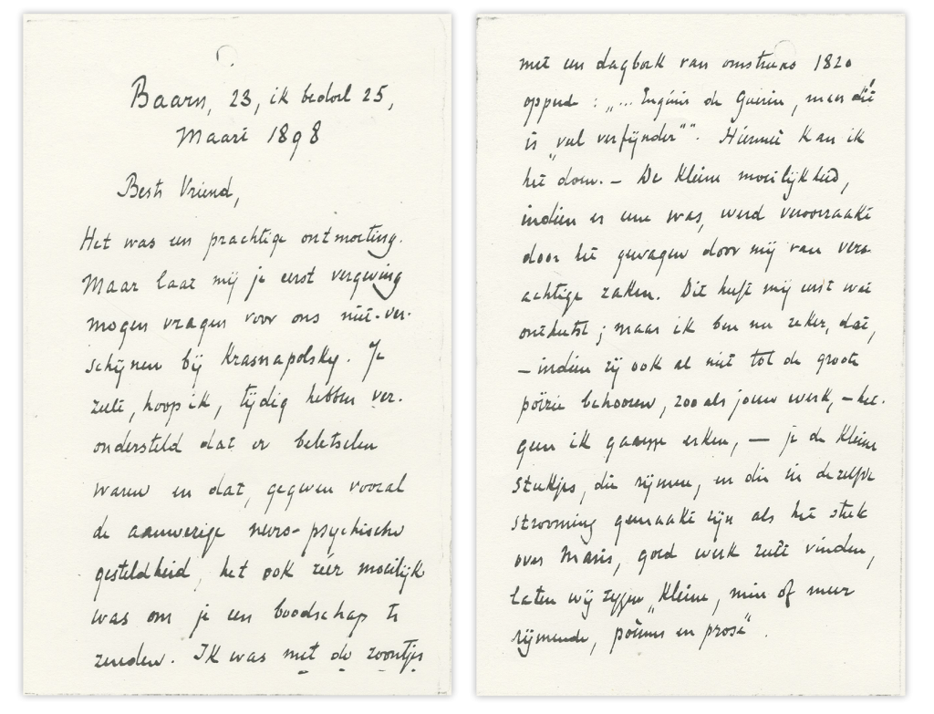 Lodewijk van Deyssel houdt die zelfgekozen afzondering trouwens niet vol. Op 28 maart 1898 stuurt hij Verwey een telegram, waarin hij hem uitnodigt langs te komen in Baarn. Albert Verwey accepteert de uitnodiging meteen. Zo snel kan het kennelijk gaan, voor je het weet zitten wij naast elkaar op mijn bank te gamen.