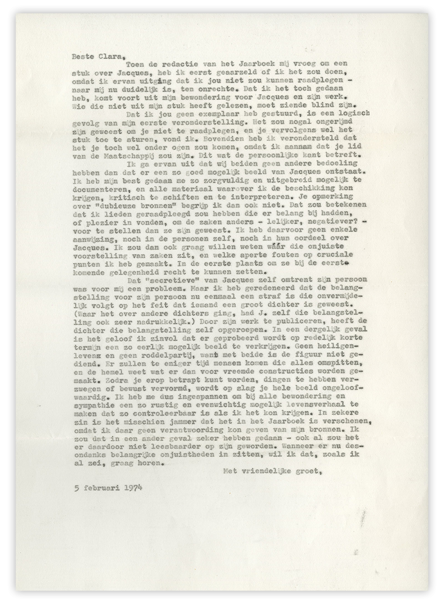En toch blijft de neiging bestaan de nadruk te leggen op haar huwelijken met Bloem en Campert. Toegegeven: bij wie roept het niet een Goede Tijden, Slechte Tijden-achtige opwinding op wanneer we als lezers een glimp opvangen van de wereld waarin gerespecteerde schrijvers en dichters door elkaar krioelen, elkaar tegenkomen op verjaardagen en feestjes, door gemeenschappelijke auteursvrienden aan elkaar worden voorgesteld, en vriendschappen, relaties, soms zelfs affaires met elkaar aanknopen? Het toneelpodium van schrijvend Nederland blijkt kleiner dan gedacht, waardoor grote namen gemakkelijk op elkaar stuiten, als botsautootjes op een te kleine dorpskermis.