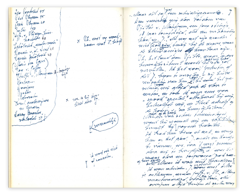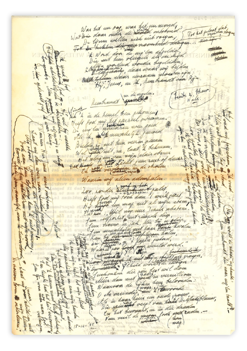Aantekeningenboekjes, schriften, velletjes: S. Vestdijk schreef op alle blanco papiertjes waarop hij de hand kon leggen. Eerste versies werden met de hand opgetekend in schriften voordat ze werden overgetypt, maar ideetjes en invallen konden overal terechtkomen.