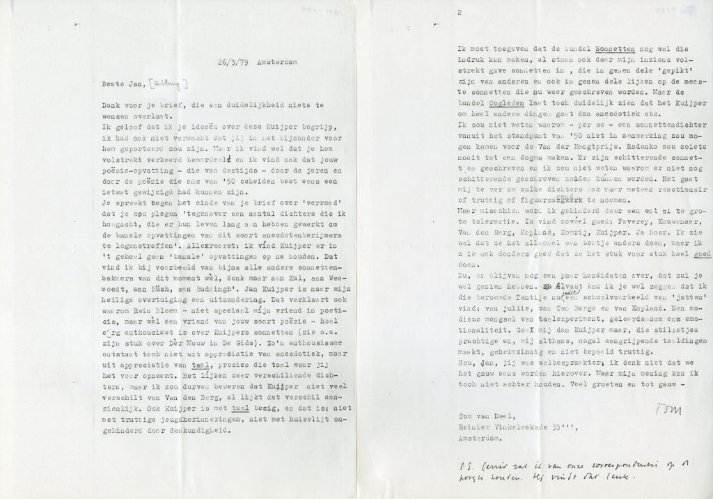 T. van Deel (1945-2019) was dichter van een klein, maar uiterst hecht en concies oeuvre. Hij schreef jarenlang kritieken voor Trouw, maakte deel uit van talrijke jury’s en was een van de eerste redacteuren van het toonaangevende literaire tijdschrift De Revisor, dat in 1974 werd opgericht. Generaties studenten Nederlands maakte hij vertrouwd met onze literatuur. Op 12 augustus overleed Tom van Deel, een man wiens leven in het teken stond van zijn hartstocht voor de letteren.
