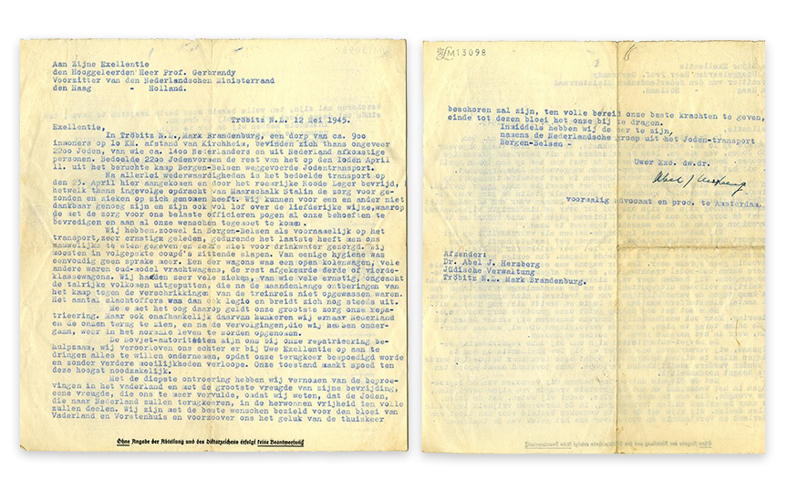 In het archief van het Literatuurmuseum ligt een brief van de Joodse advocaat Abel J. Herzberg, gedateerd 12 mei 1945. Een broos vergeeld papier. De brief is gericht aan excellentie Pieter Sjoerds Gerbrandy, op dat moment de premier van Nederland. De diepmenselijke toon van het schrijven blaast het kippenvel op mijn huid.