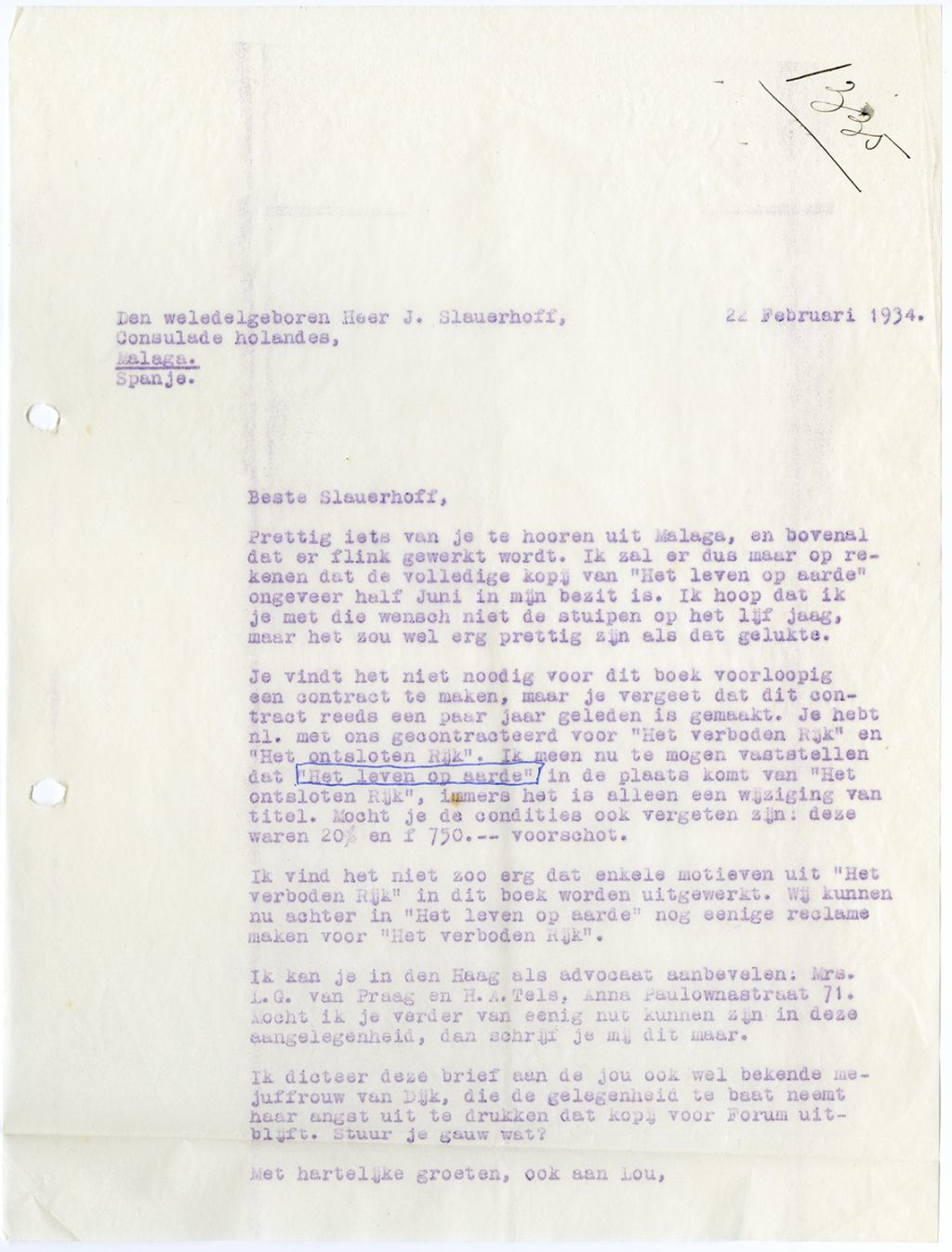 Het moet mogelijk zijn deze twintig bladzijden schrift in een week elk te leveren. Dit beteekent een gereedkomen van het werk, met het persklaar typen, in drie maanden.
