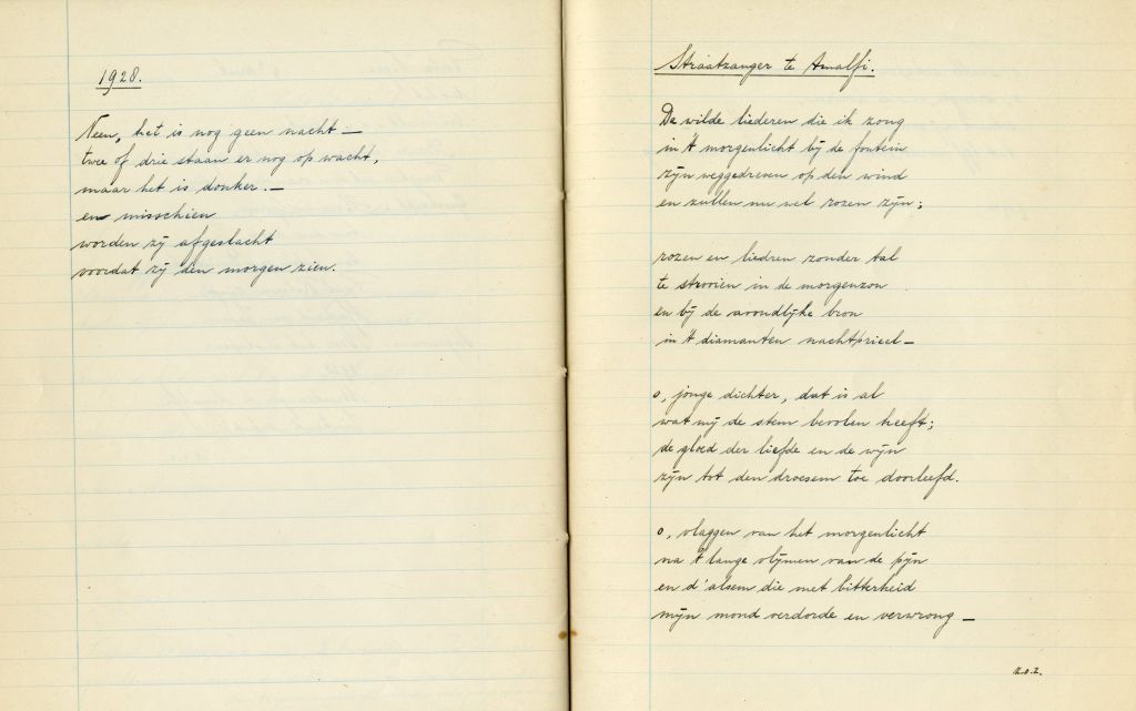 Denkend aan Marsman zie ik brede golven waarin hij traag door oneindige diepten neerdaalt, rijen ondenkbaar kleine visjes…