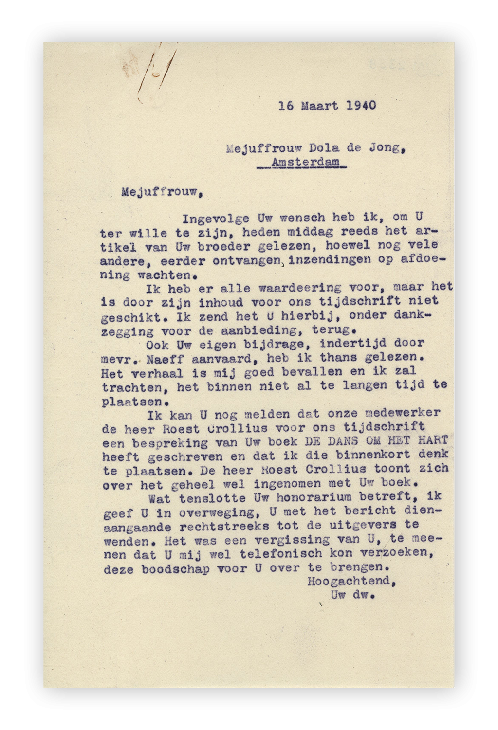 Literatuurgeschiedenis is een gigantische en eindeloze uitwisoperatie. Met vergankelijkheid en vluchtigheid als zijn trawanten maakt de tijd voortdurend schrijvers zoek. Soms wordt een auteur echter, door toewijding of toeval, aan de vergetelheid ontrukt. Toen Dola de Jong in 2003 op 92-jarige leeftijd overleed, was ze allang in het vergeetboek bijgeschreven. Maar in 2015 stond ze opeens weer volop in de belangstelling toen uitgeverij Cossee En de akker is de wereld (1947) herdrukte. ‘Dola de Jong verdient herontdekking’, jubelde Arjan Peters in de Volkskrant over deze roman, die hij ‘volstrekt onromantisch en bij vlagen diep ontroerend’ noemde.