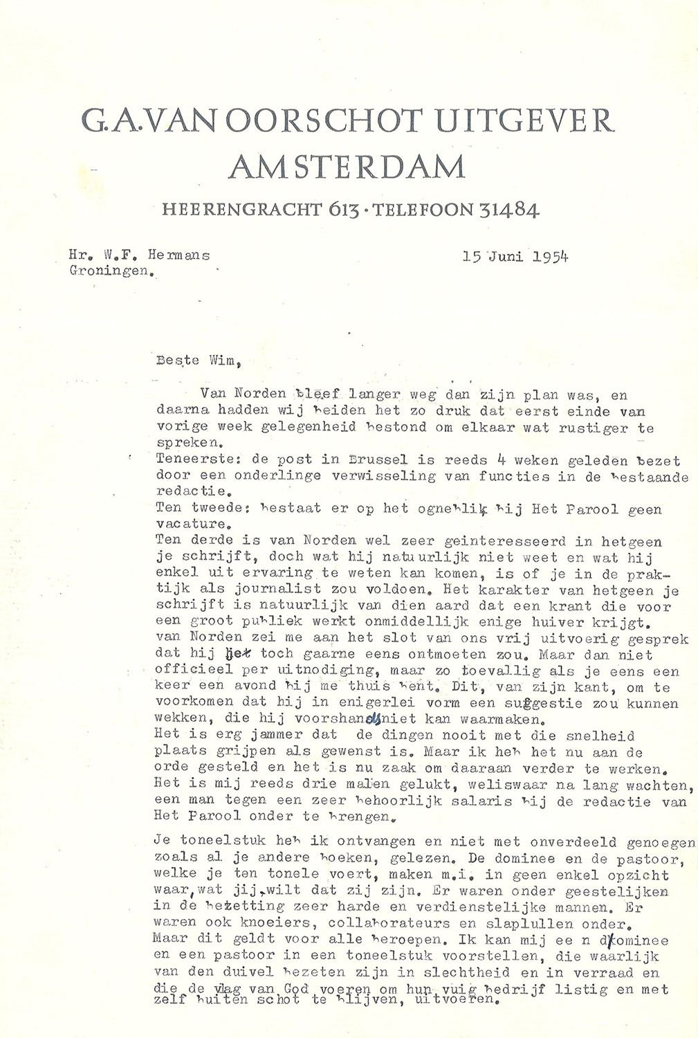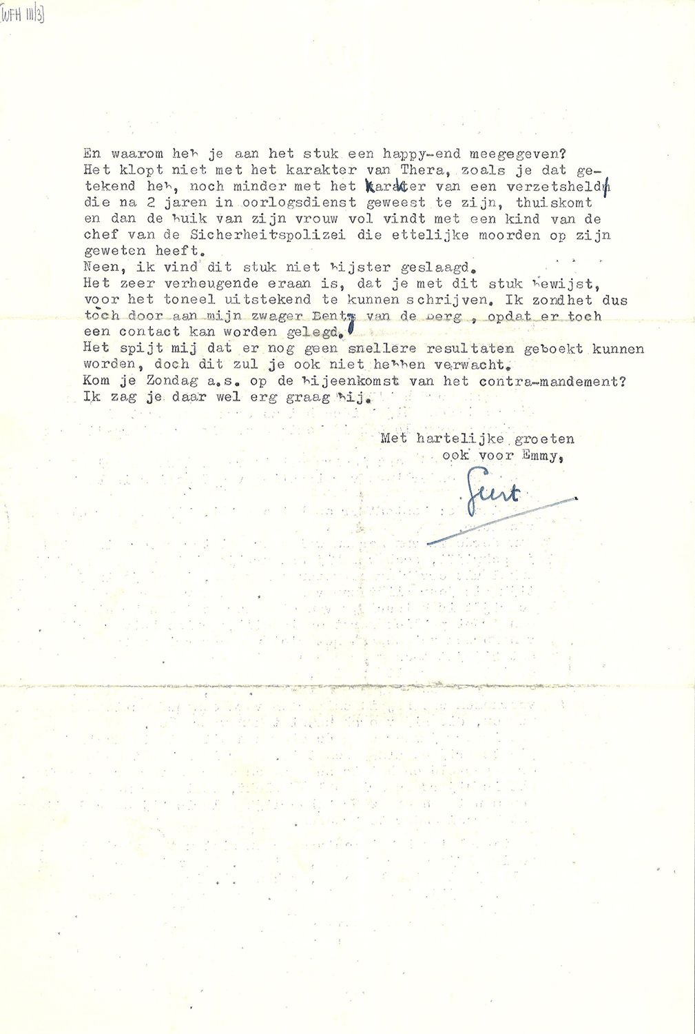 In september 1952 ontvangt Hermans een circulaire van de Commissie voor de Propaganda van het Nederlandse Boek, om mee te doen aan de ‘éénacter-prijsvraag Boekenweek 1953’. Schrijvers worden uitgenodigd een stuk van 15 tot 25 minuten te maken over ‘de volkomen ommekeer’ die een brief teweegbrengt ‘in een bestaande situatie ter plaatse waar de brief wordt ontvangen’. Hermans vat de opdracht serieus op. Hij schrijft ‘Het omgekeerde pension’, volgens de ondertitel van het stuk een ‘psychodrama in één bedrijf’, een hilarische toneeltekst waarin alles letterlijk op zijn kop staat.