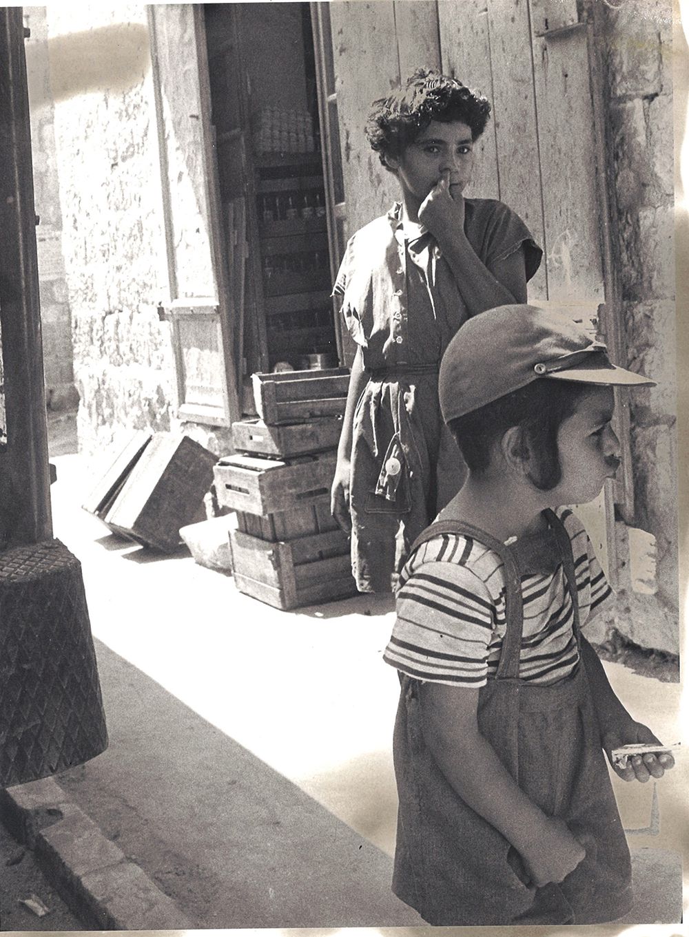 En dat doet hij ook als beschouwer, want de verrassendste vondst stond in een bijschrift: ‘Judicus Verstegen fotografeerde veel. Hij schoot honderden foto’s op zijn reizen door Europa en het Midden-Oosten. Hij werkte aan een fotoboek over Israël met eigen teksten en teksten uit de Bijbel.’ De foto die De Parelduiker heeft gekozen, vind ik sterk: straatfotografie in Jeruzalem, niet al te strak gecomponeerd maar met twee karakteristieke koppen: het ene kind kijkt brutaal de wereld in, het andere lijkt een tikje betrapt maar is ook nieuwsgierig naar de camera.
