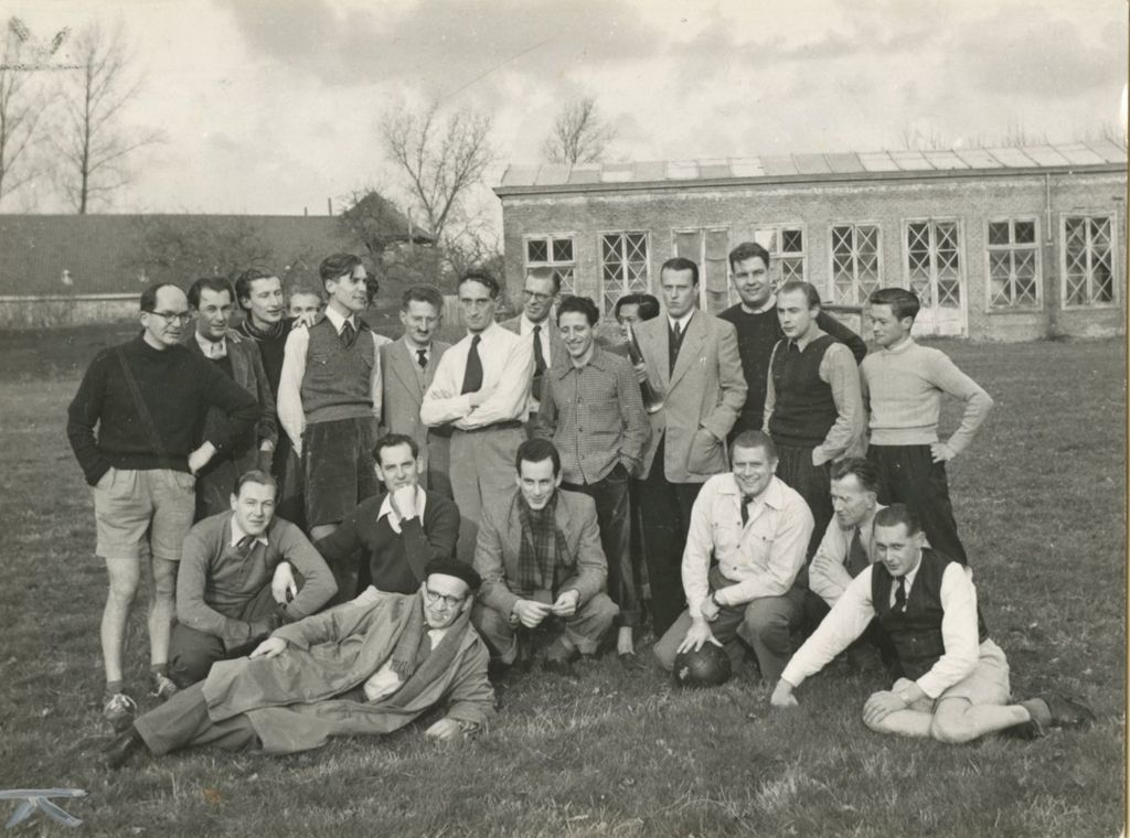 De selectie; staand v.l.n.r: J.B. Charles, Hans van Straten, Harry Mulisch, Paul Rodenko, Ad den Besten, Remco Campert (vrijwel geheel schuilgaand achter Den Besten), Maurits Mok, Henk van der Horst, D. Opsomer, Leo Klatser, Oey Tjeng Sit, Willem Frederik Hermans, Wim Schouten, Bert Schierbeek en L.F. Abell; gehurkt v.l.n.r.: Henk van Tienhoven, Geert Lubberhuizen, Herman van Praag, Gerrit Borgers en Meine S. Koops; liggend/zittend v.l.n.r.: Jan Meulenbelt, Bergman. Collectie: Literatuurmuseum