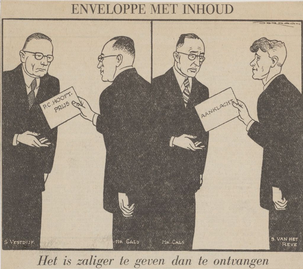 Een regeringsprijs kan niet worden uitgereikt voor een stuk proza waartegen ‘terecht ernstige bezwaren’ kunnen worden gemaakt. Dus weigerde de katholieke staatssecretaris Cals in 1951 de reisbeurs toe te kennen die Gerard Reve volgens een jury bij een prijsvraag had verdiend. De verontwaardiging onder letterkundigen leidde tot een actie de auteur alsnog aan het prijzengeld te helpen.