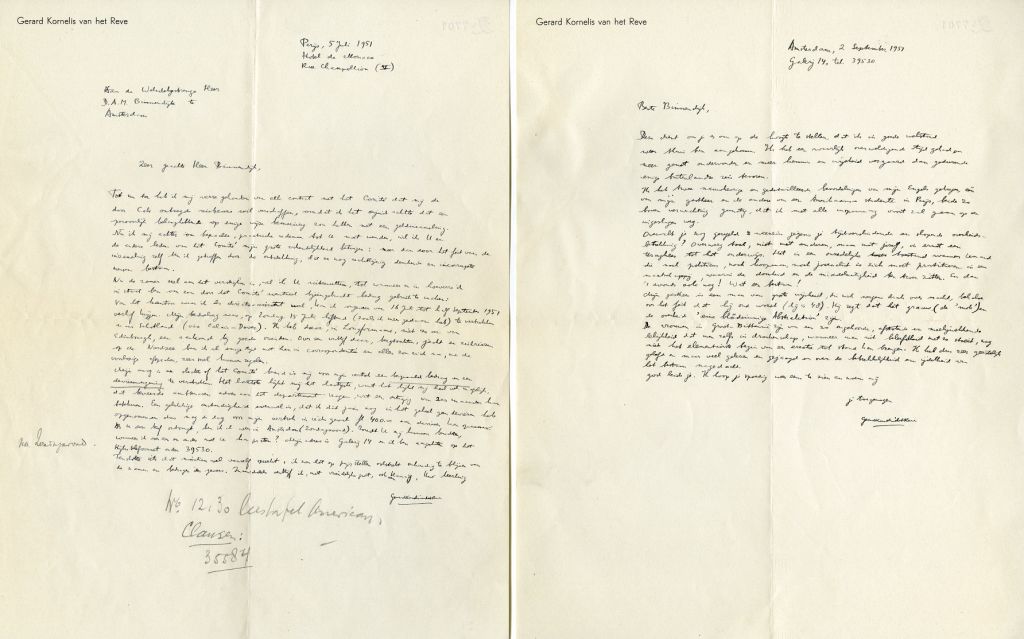 Brieven van Gerard van het Reve, 5 juli 1951 en 2 september 1951. Collectie: Literatuurmuseum