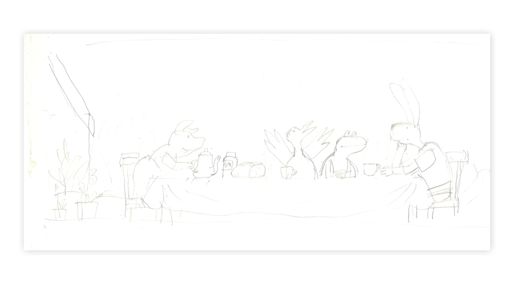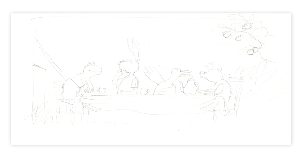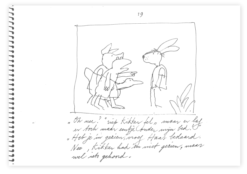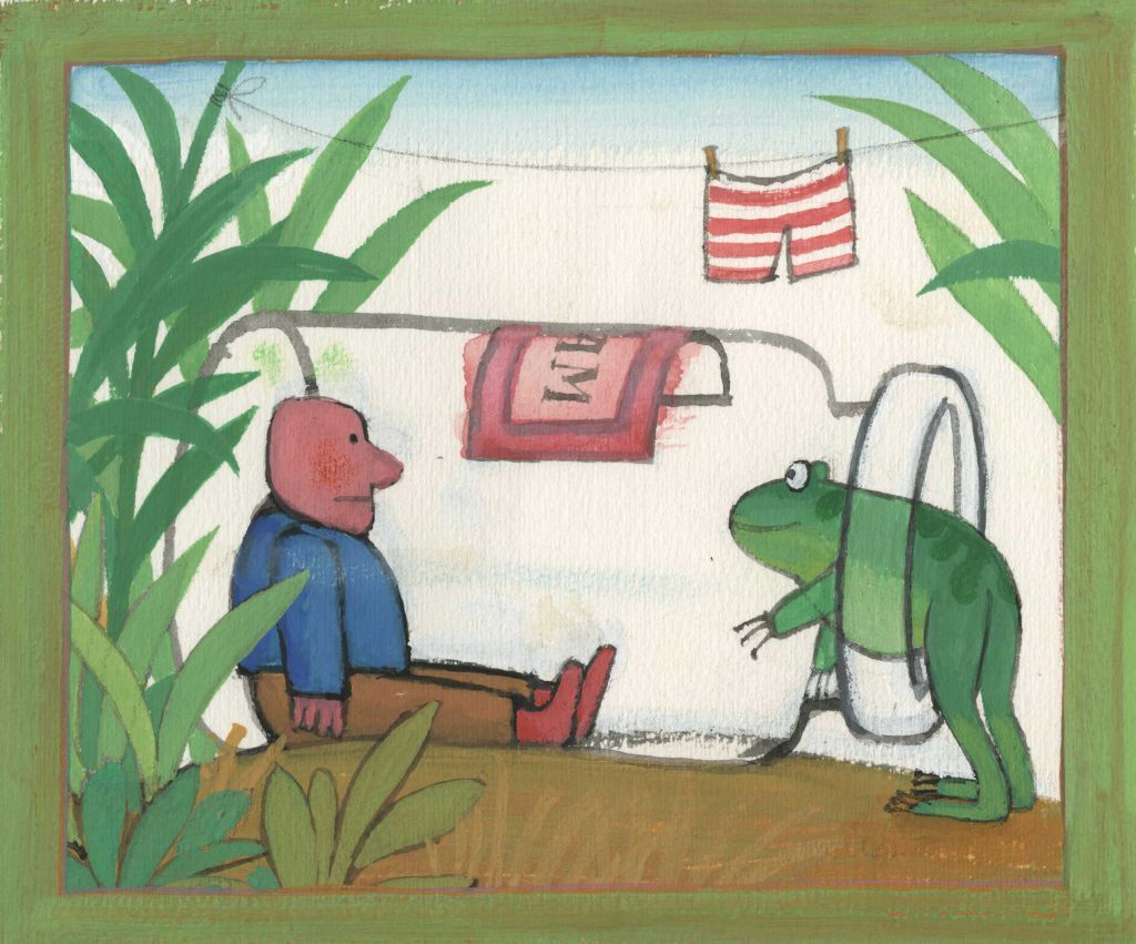 Enkele van de originele tekeningen uit dit prentenboek zijn te vinden in de archieven van het Literatuurmuseum. Daarop is te zien dat Kikker in bovengenoemde scène zijn kenmerkende broekje heeft uitgetrokken: dat hangt aan een waslijn te drogen. Ook op een andere prent, die een grootschalige viering aan een lange tafel toont, heeft Kikker geen broek aan – voor de hedendaagse Kikker-kenner een wat nudistisch beeld. Diezelfde kenner zal ook opmerken dat Kikkers postuur toen nog wat gedrongener was, met een vollere nek en een kortere neus.