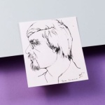‘Maar wat ik ermee bedoelde? Of ik er iets mee bedoelde? Geen idee. Volgens mij was mijn gedachte dat je bij doorschijnend papier alsnog twee helften van mijn gezicht zou zien. Maar ja, dat slaat ook niet echt ergens op, want dan heb je twee ogen die allebei een andere kant op kijken. Sommige andere schrijvers bleken bij dit projectje echt heel goeie tekenaars, zoals Carmiggelt. Ik niet. Ik tekende mezelf heel vlug en onnadenkend, binnen een paar minuten was ik klaar. Ik vond het een leuk, raar verzoek. Sowieso was het een mooie tijd, waar ik graag aan terugdenk, want bij De Revisor gebeurde van alles. En voor mij begon daar ook heel veel.’