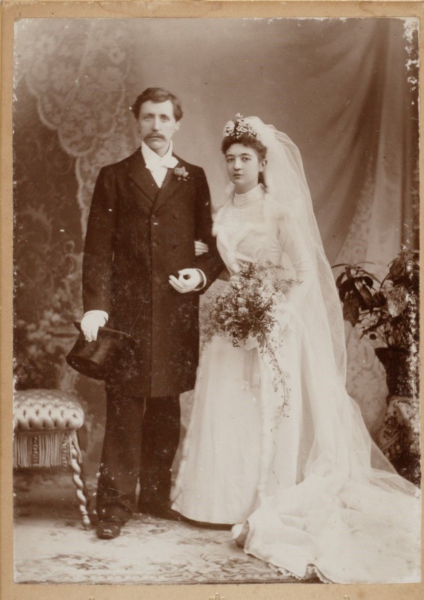 Willem Kloos en Jeanne Reyneke van Stuwe op hun trouwdag in 1900, in de sneeuw in 1912 en in 1925. Collectie: Literatuurmuseum