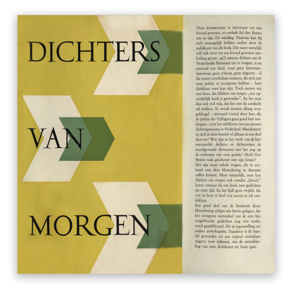 De titel van die bloemlezing was Dichters van morgen. Ze verscheen in het late najaar van 1958. Die vertraging is begrijpelijk, want Den Besten werd overstelpt met inzendingen. Er waren maar liefst 428 inzenders (bijna 2500 gedichten!), van wie er uiteindelijk 59 een plaats kregen.