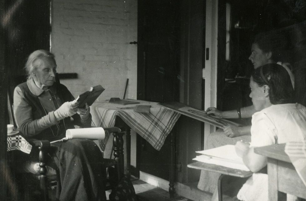 Het is een vreemd, voyeuristisch genoegen om je te realiseren dat allerlei beroemdheden uit de literatuur, beeldende kunst, politiek en wetenschap zich daar ooit hebben staan omkleden. Het gaat hier namelijk om het landgoed van Richard en Henriette Roland Holst. De beeldend kunstenaar en dichteres-politica – op 24 december dit jaar zou zij 150 zijn geworden – ontvingen talloze gasten uit hun enorme vriendenkring op dit nog altijd serene stukje bos en heide bij Zundert, vooral bekend als het Brabantse geboortedorp van Vincent van Gogh.