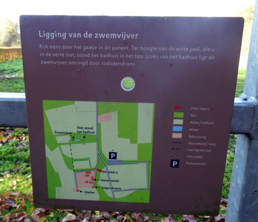 Een van de aardigste details op de Oude Buisse Heide is een gaatje ter grootte van een dubbeltje. Kijk je erdoorheen dan zie je precies de plek waar een badhuis heeft gestaan, naast een zwemvijver.