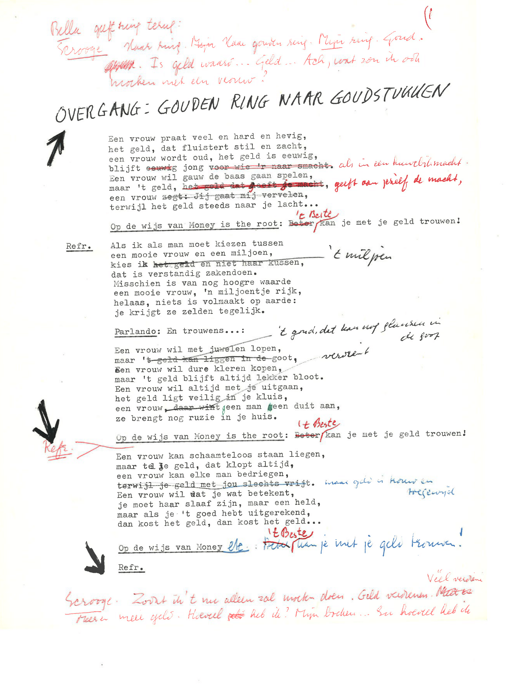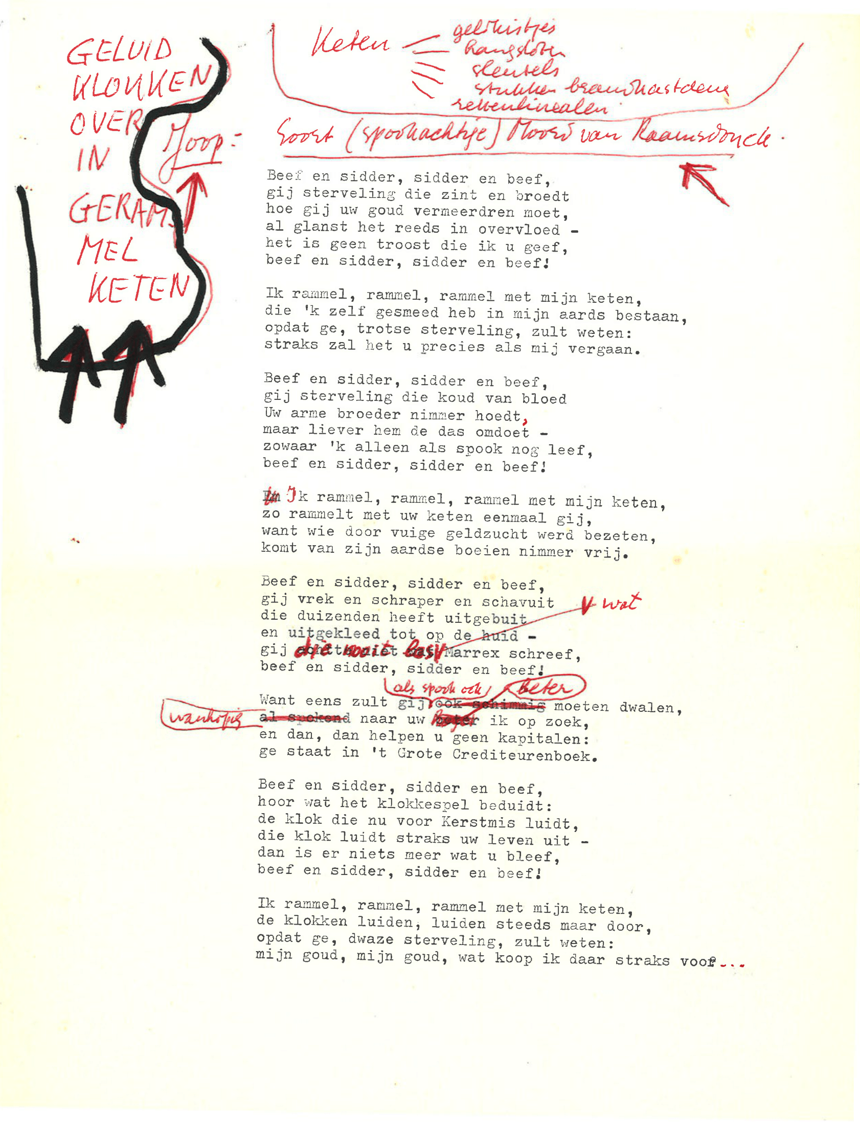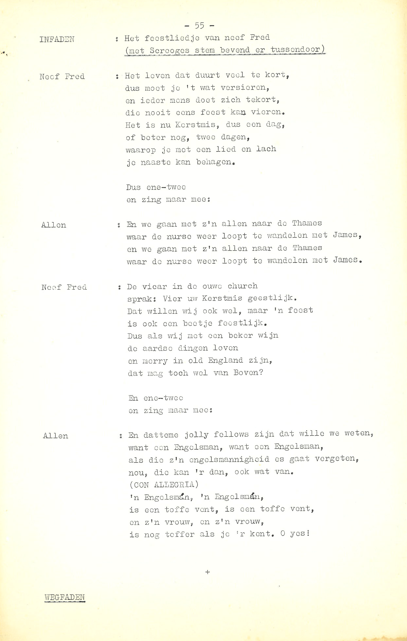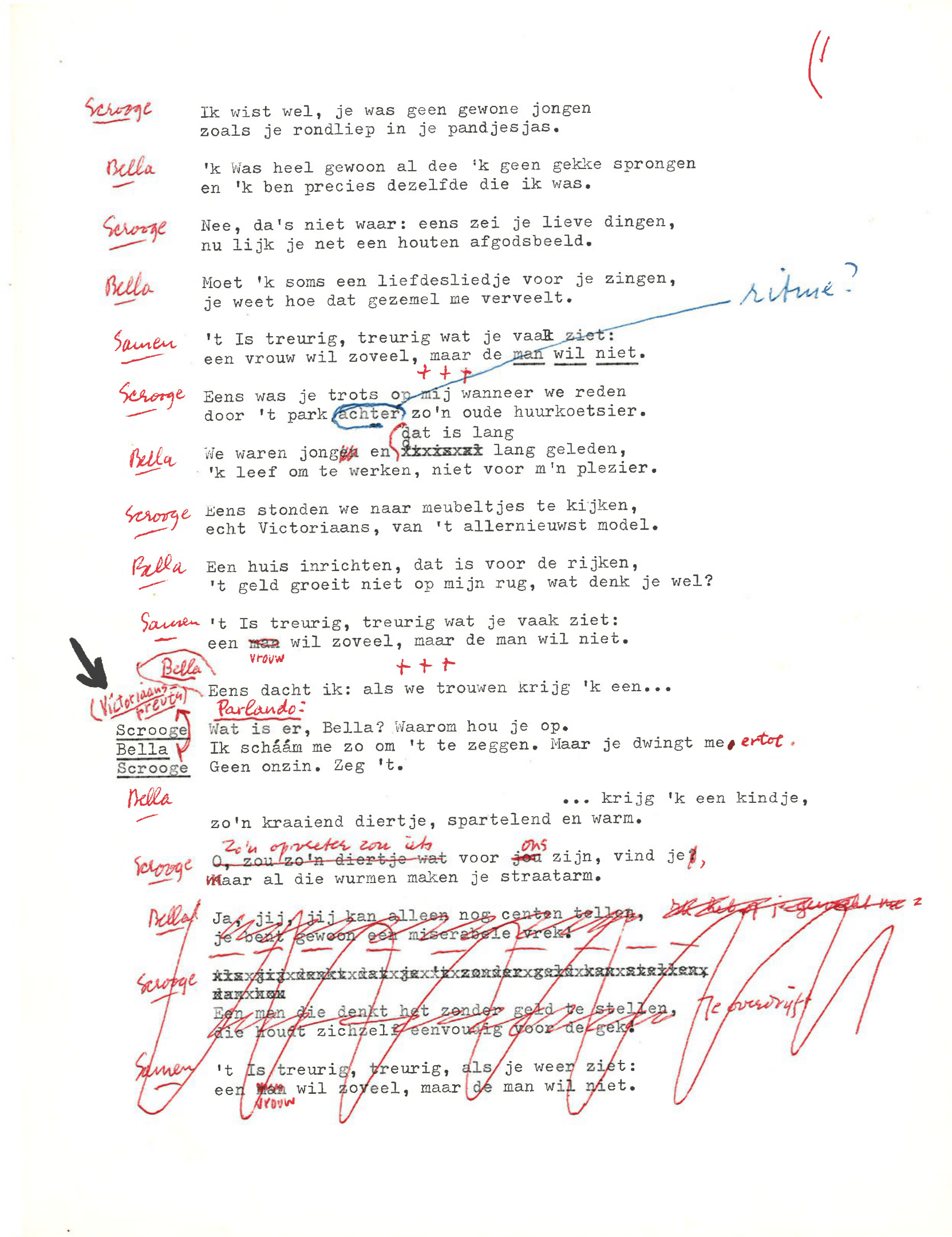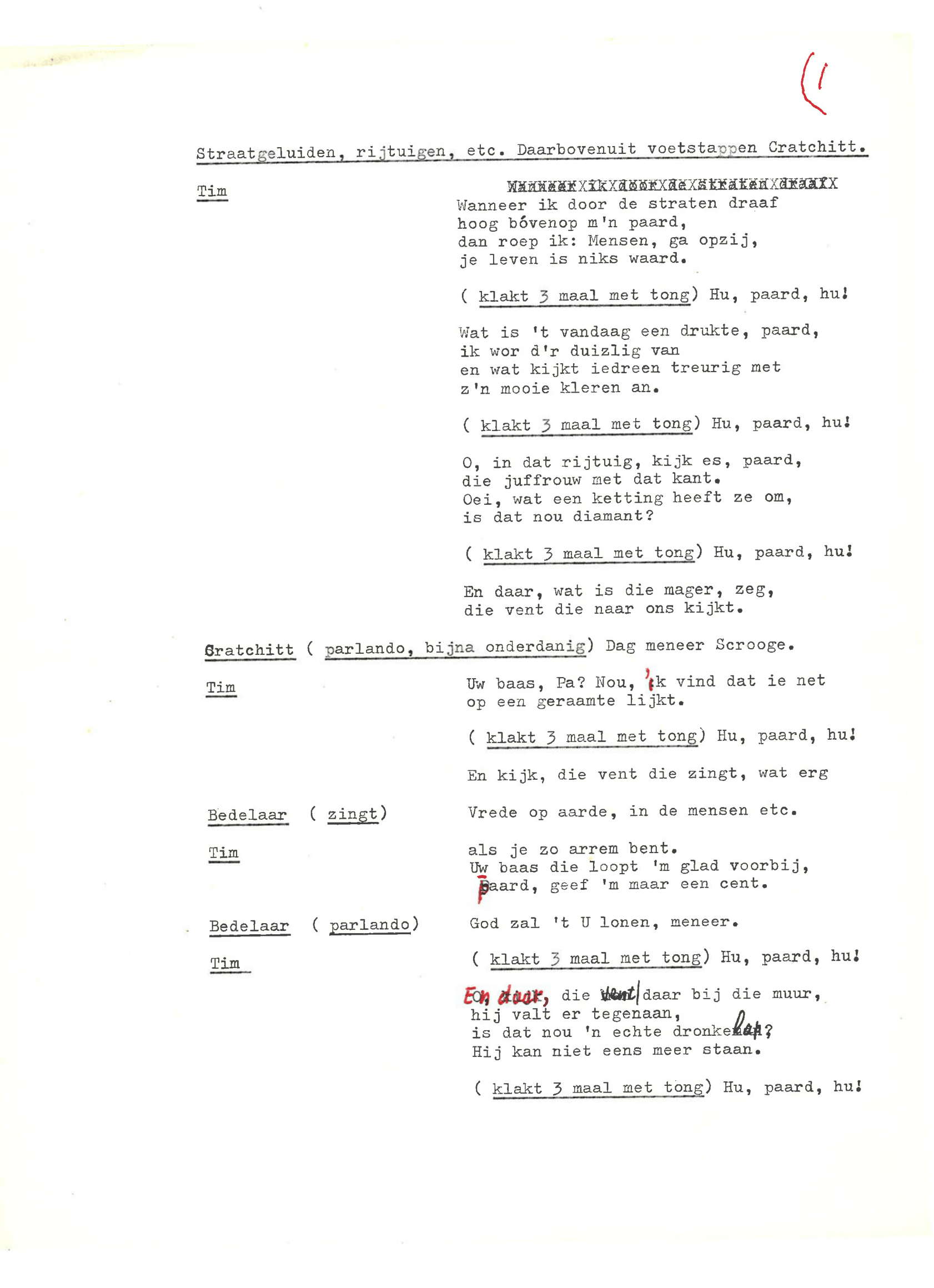 zingt Ebenezer Scrooge in de musical Scrooge en Marley, die op 23 december 1969 werd uitgezonden door de AVRO. De musical is geschreven door Hans Andreus, dichter en schrijver van romans, verhalen, hoorspelen en kinderboeken. Het is een vrije bewerking van Charles Dickens’ A Christmas Carol. In een dossier in het Literatuurmuseum tref ik de liedteksten en het typoscript van de musical aan. Verder zitten er dialogen, liedjes, poppenspellen en toneelteksten in de map, maar ik concentreer me omdat de feestdagen naderen op de kerstmusical.