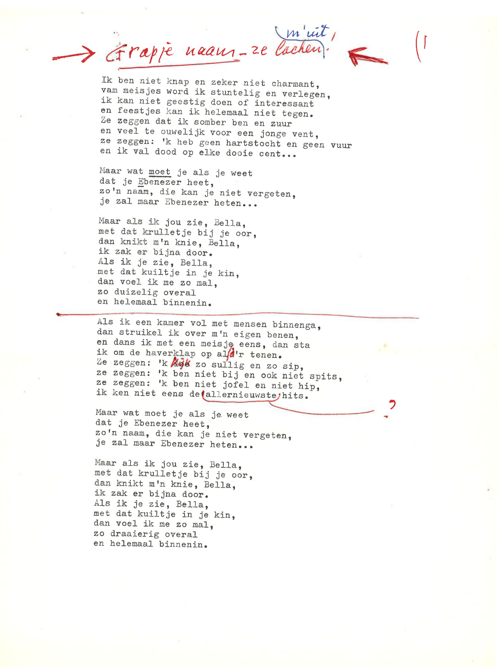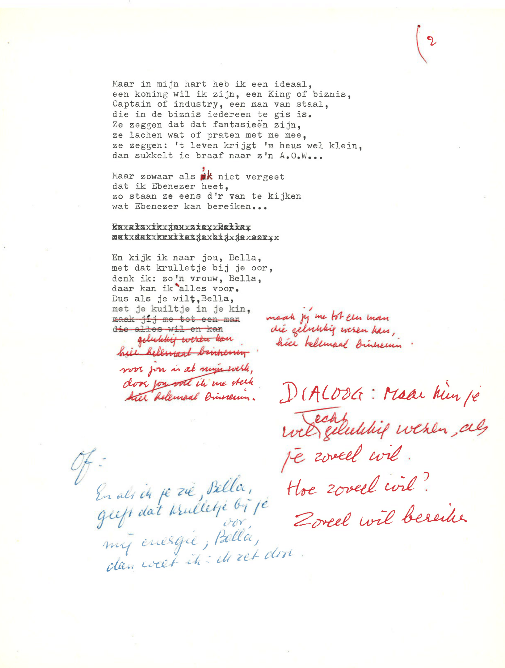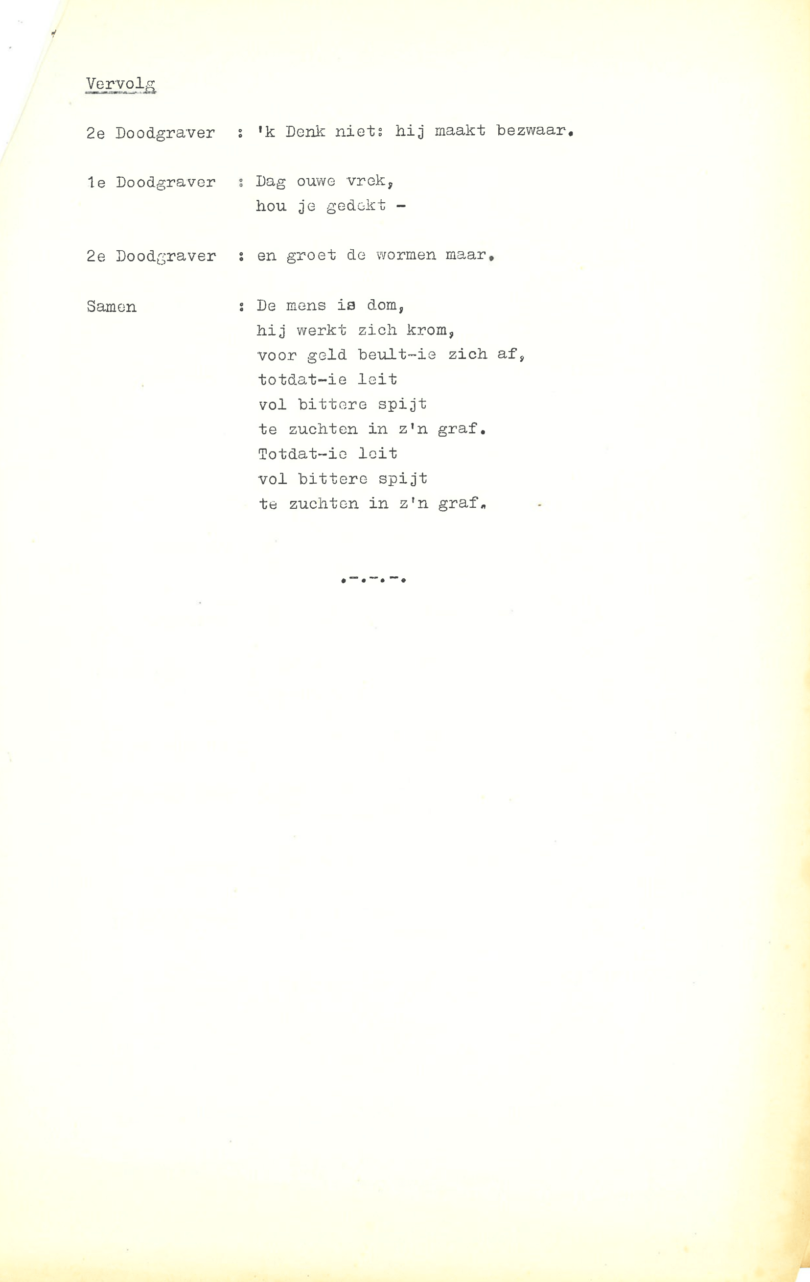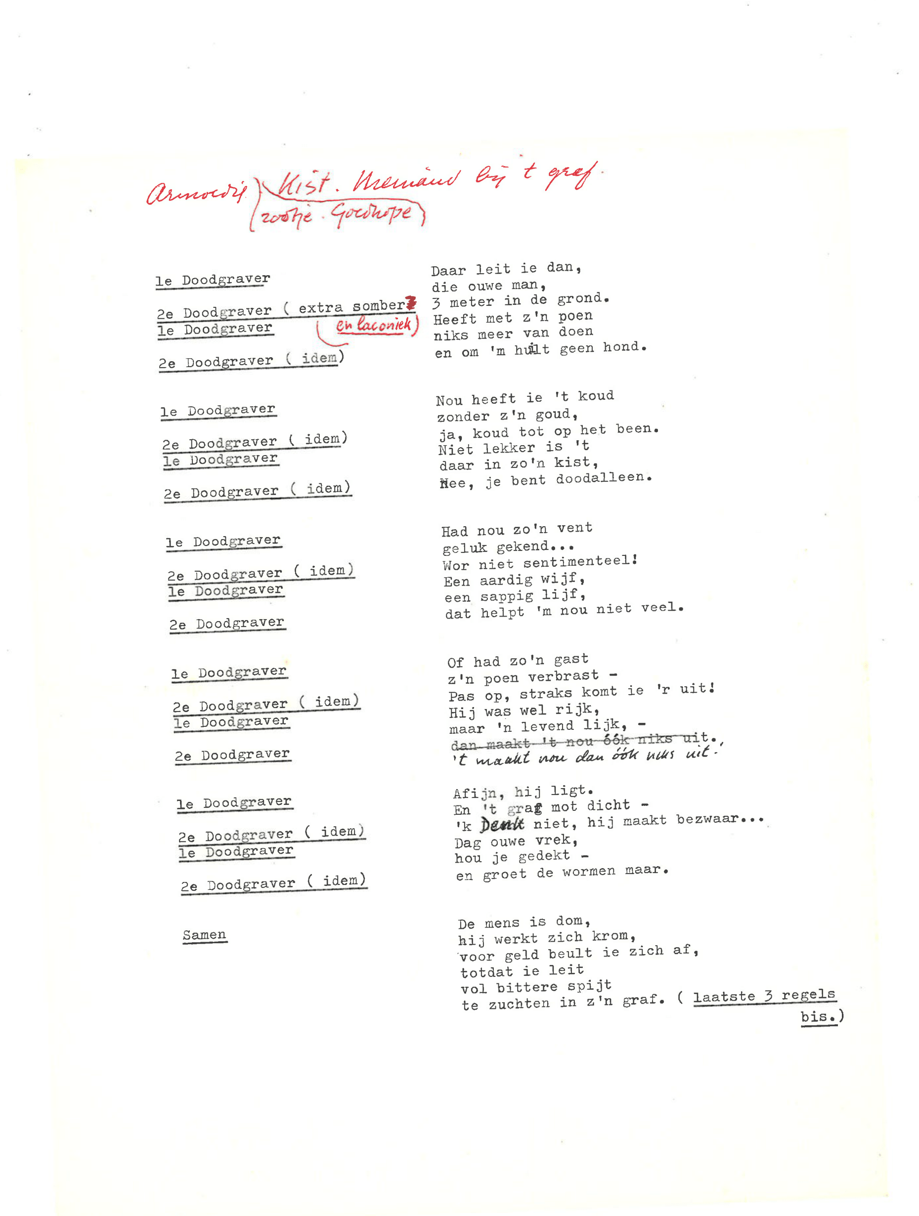 zingt Ebenezer Scrooge in de musical Scrooge en Marley, die op 23 december 1969 werd uitgezonden door de AVRO. De musical is geschreven door Hans Andreus, dichter en schrijver van romans, verhalen, hoorspelen en kinderboeken. Het is een vrije bewerking van Charles Dickens’ A Christmas Carol. In een dossier in het Literatuurmuseum tref ik de liedteksten en het typoscript van de musical aan. Verder zitten er dialogen, liedjes, poppenspellen en toneelteksten in de map, maar ik concentreer me omdat de feestdagen naderen op de kerstmusical.