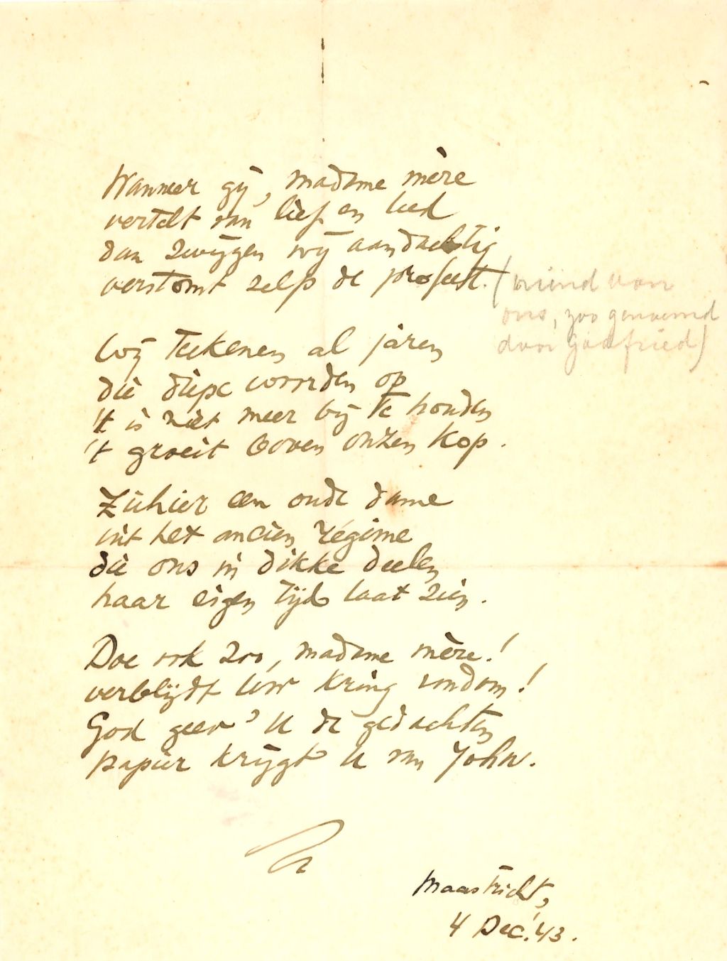 Godfried Bomans was geen dichter. Je kunt misschien beter zeggen: Godfried Bomans is de dichter van één versje. Het is zijn beroemdste, en het staat niet in de verzamelde werken. Dat is het gevolg van een merkwaardig misverstand. Het gaat om ‘Spleen’, dat Michel van der Plas in 1954 opnam in een bloemlezing met lichte gedichten: Ongerijmde rijmen.