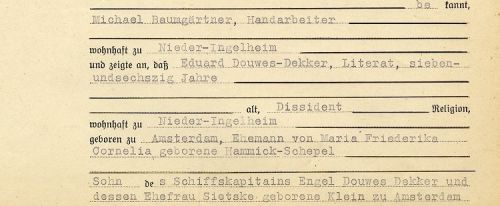 De overlijdensakte van Multatuli, de eerste gecremeerde Nederlander
