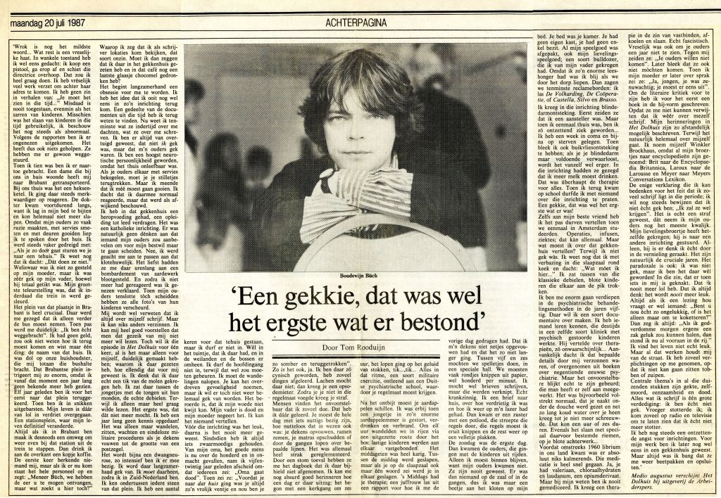 Tien jaar later werkte hij het verhaal over Boxtel uit tot een serie columns die hij publiceerde in het Amsterdamse universiteitsblad Folia, om deze vervolgens in 1987 te bundelen tot de roman Het dolhuis (De Arbeiderspers). Hoofdfiguur is het jongetje Winkler Brockhaus, dat een jaar lang verblijft in een door katholieke nonnen geterroriseerde jeugdpsychiatrische inrichting. De aaneenschakeling van gruwelijkheden bereikt het dieptepunt in een ongeluk waarbij een medepatiëntje in een gigantische pan met kokend water valt, omdat hij door een non gedwongen wordt een lepel eruit te vissen. De reden waarom Winkler naar de inrichting wordt gestuurd is minstens zo vreselijk en onrechtvaardig: niet omdat hij gek zou zijn, maar vanwege de incestueuze relatie met zijn vader, waardoor het huwelijk van zijn ouders onder druk was komen te staan.