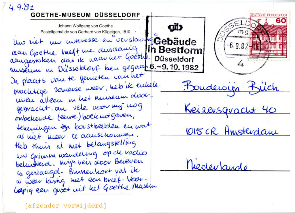 In 2010 gaven zij Eva Rovers exclusief toestemming om het archief te onderzoeken ten behoeve van haar biografie BOUD. Het verzameld leven van Boudewijn Büch (Amsterdam, 2016). Ook stemden de erven in met de openbaarmaking van een aantal archiefstukken in dit verhaal op Literatuurmuseum.nl, waarvoor dank.