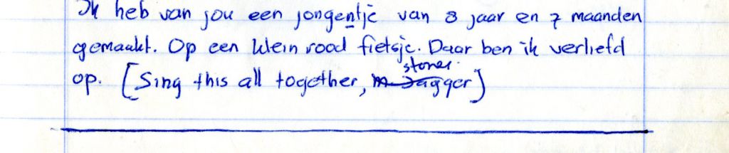 Ik heb van jou een jongentje [sic] van 8 jaar en 7 maanden gemaakt. Op een klein rood fietsje. Daar ben ik verliefd op.