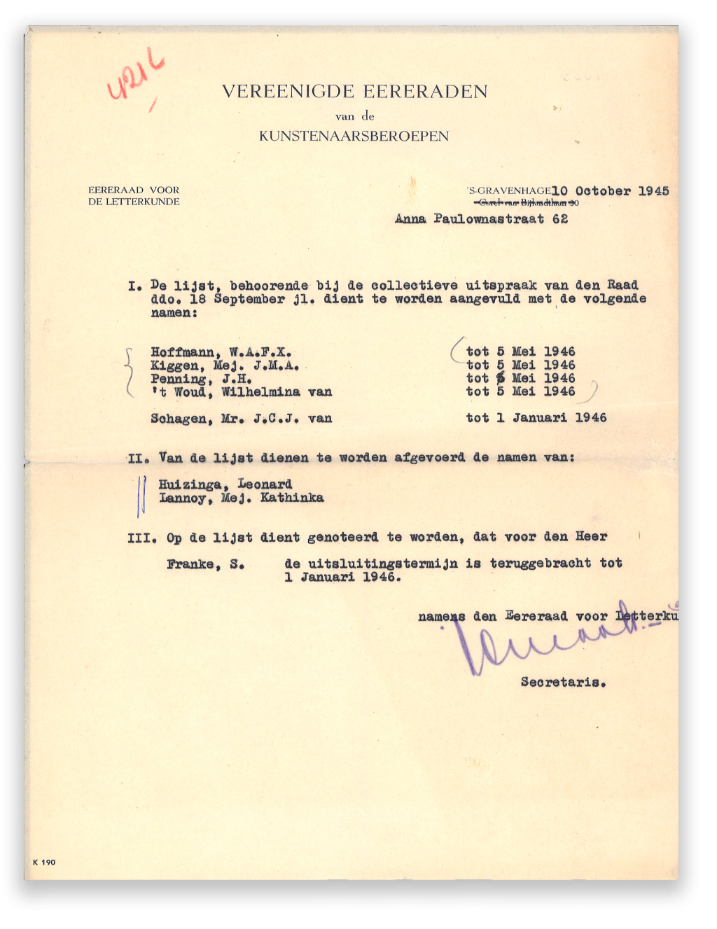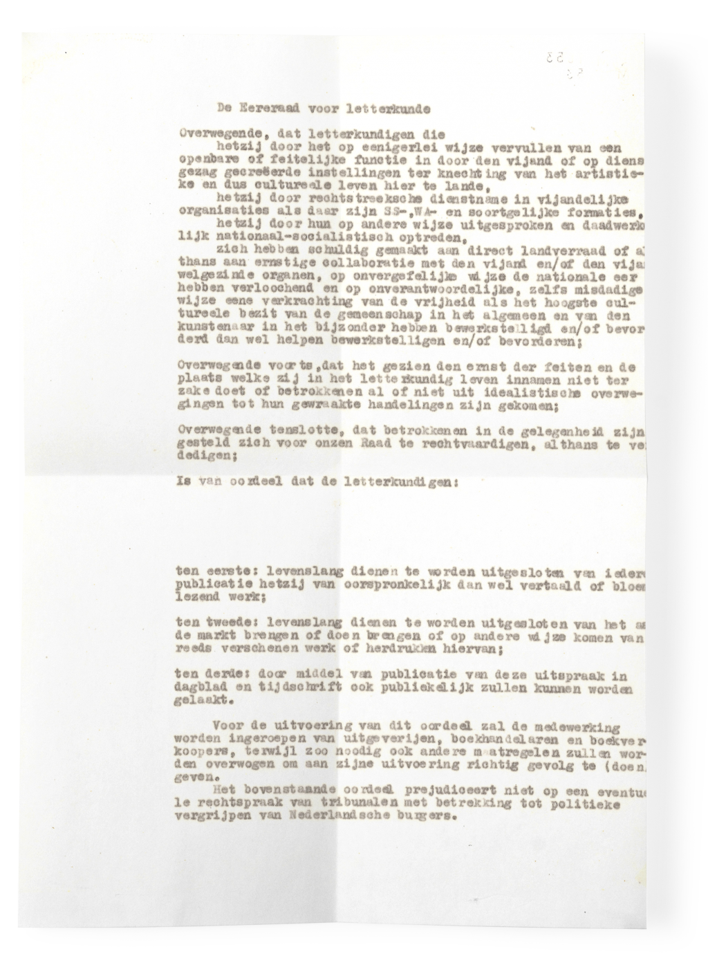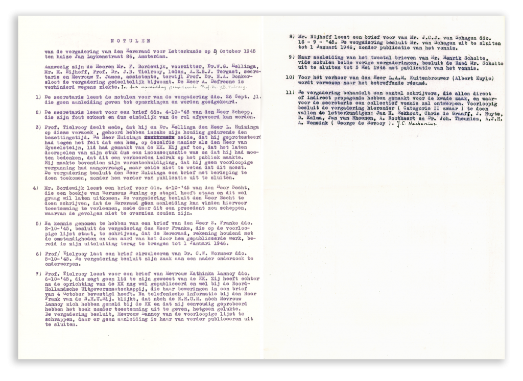 Bij de publicatieverboden leek een zekere willekeur een rol te spelen. Dat blijkt uit de notulen, maar ook uit een verslag dat Sjoerd Leiker optekende, indertijd secretaris van de Eereraad. Vooral de opstelling van Martinus Nijhoff wekte soms verbazing: ‘Hij kon het ene ogenblik het gedrag van een auteur grondig verfoeien en ons daarna verrassen met opmerkingen, waaruit diezelfde schrijver naar voren kwam als een engelachtige figuur, als een toonbeeld van goedheid. Bordewijk vroeg dan wel eens vertwijfeld: “Wat is het nou, Nijhoff, ja of nee”?’ (Wam de Moor vertelt dit verhaal in zijn biografie over J. van Oudshoorn).