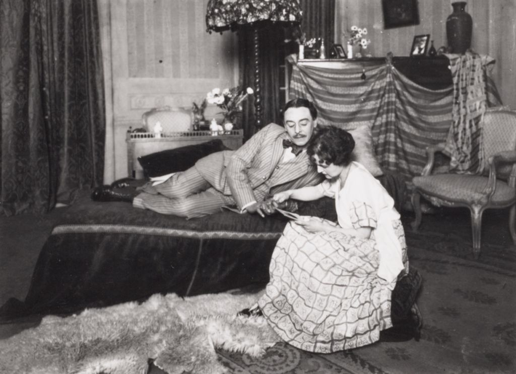 Louis Chrispijn jr. en Else Mauhs in de opvoering van Eline Vere door het Hofstadtoneel in het Verkade Theater in Den Haag, 1918