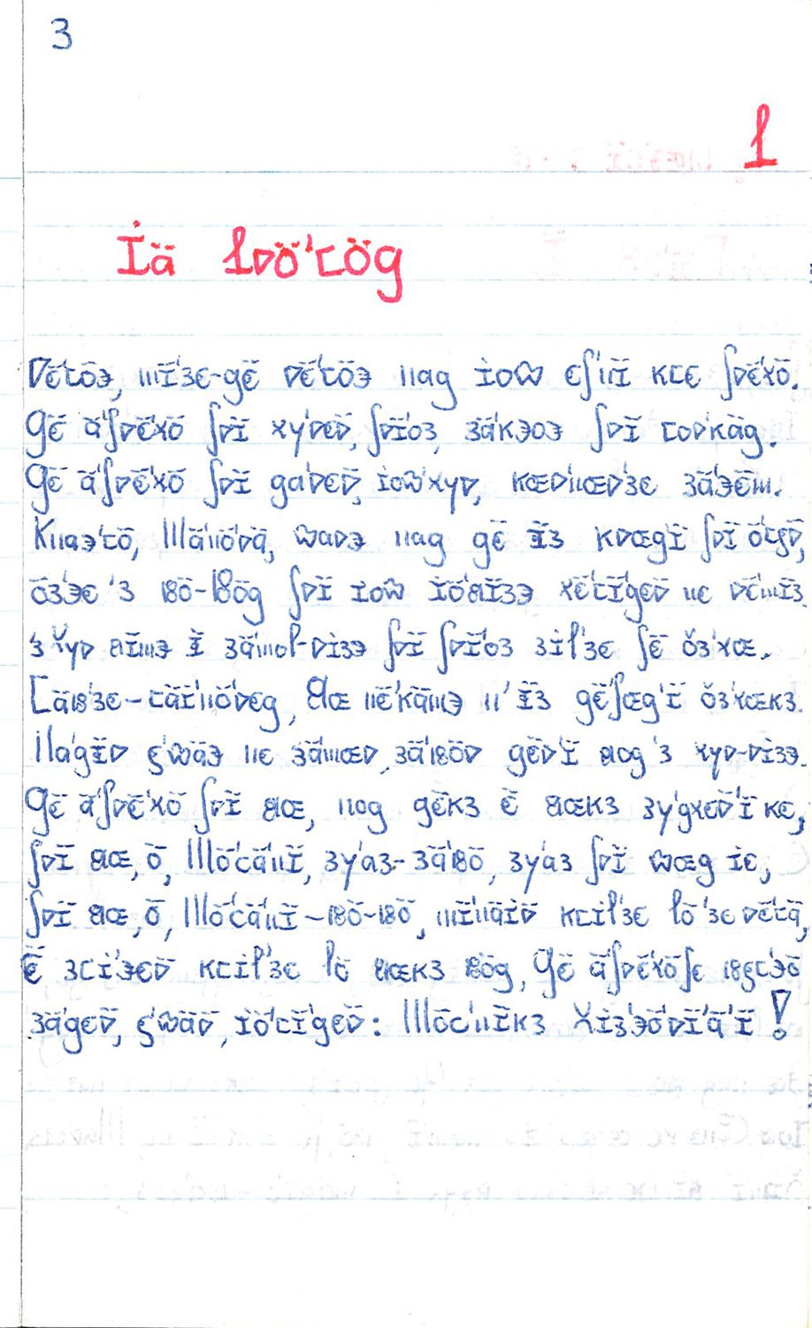 Lees hieronder mee: het eerste voorgelezen verhaal (0:05-01:10) is de proloog van de IIIö’cä’iiÏK3 XÏ3’€ö>Ï’ä, oftewel de Mocaanse Historiën. Op 11:34 is een door Ilja gezongen Mocaanse versie van ‘Stille nacht, helige nacht’ te horen.