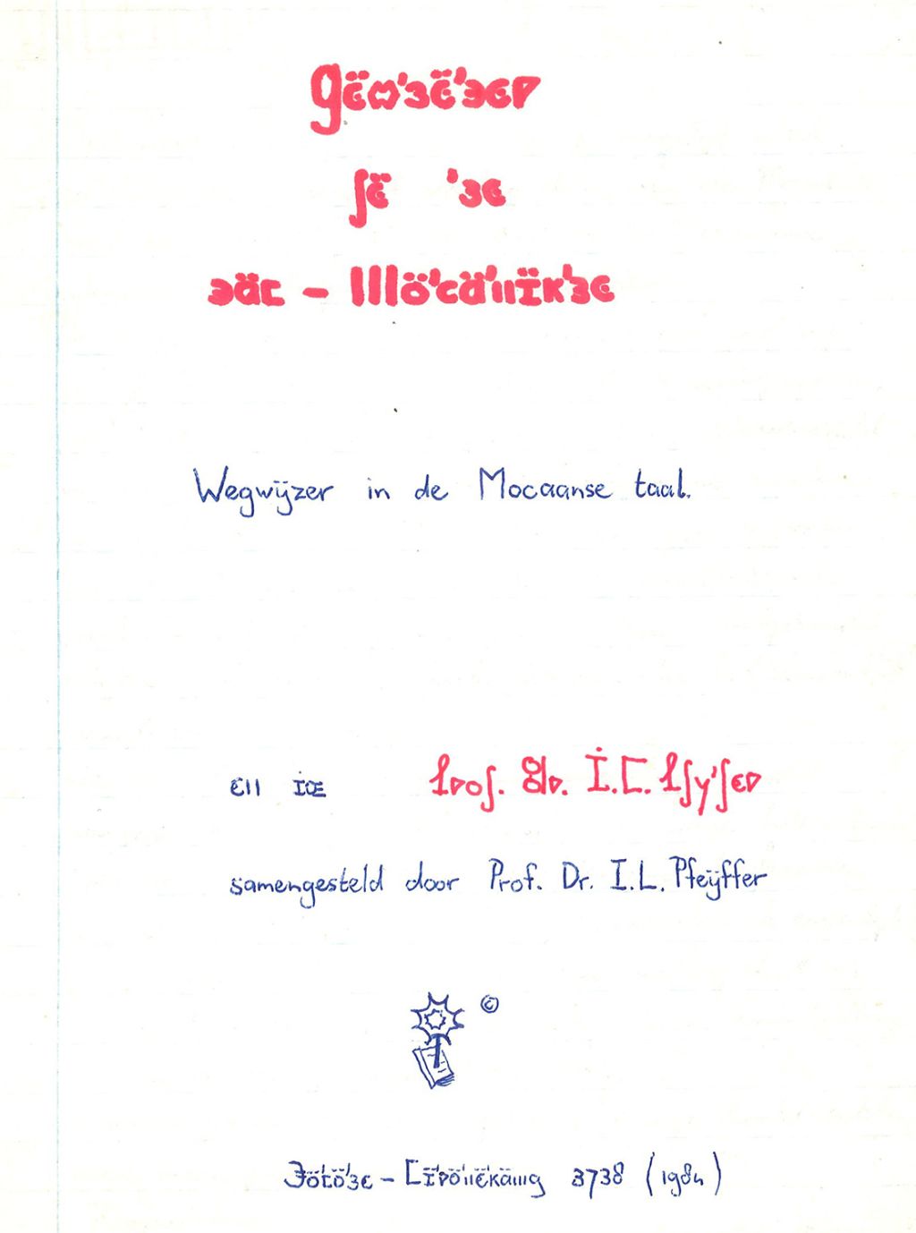 De prehistorie van de Mocaanse taal gaat minstens zo ver terug als die van het land. Zoals zoveel kinderen was Ilja Leonard Pfeijffer geïnteresseerd in geheimtaal, en er zijn meerdere boekjes waarin hij allerlei codes heeft opgeschreven waarmee boodschappen omgezet konden worden. In april 1978 maakte hij een zeer klein boekje dat ca. 2 bij 3 cm meet, waarin hij geheimschrift heeft verzameld. En uit een ander boekje blijkt zijn belangstelling voor andere talen, zo schrijft hij het alfabet van de Touareg over.