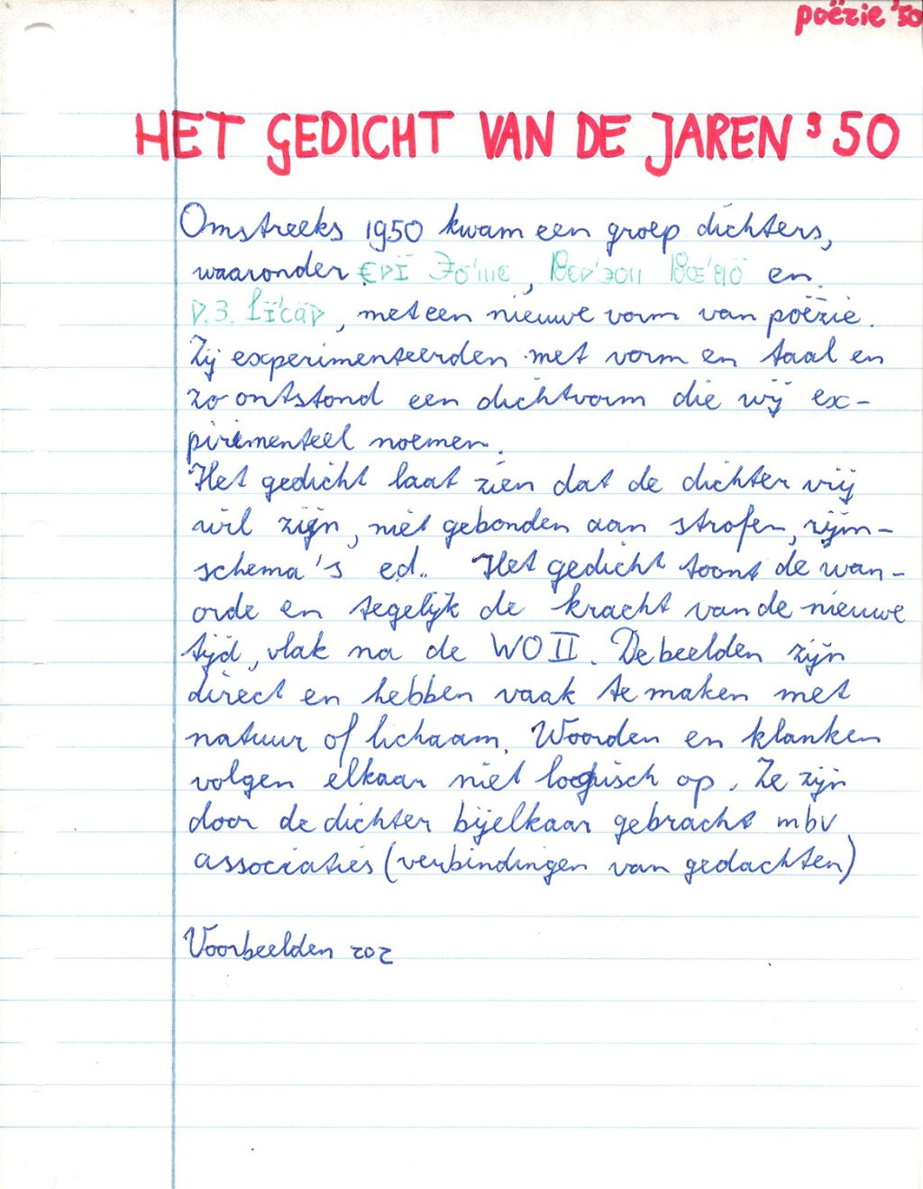 Minder ambitieus is het overzicht van de naoorlogse Mocaanse poëzie. In de jaren vijftig waren er dichters die experimenteerden met vorm en taal. ‘Woorden en klanken volgen elkaar niet logisch op’, en hoewel de voorbeelden in het Mocaans zijn, is het experimentele karakter duidelijk te zien. Een afwisseling van korte en lange regels, een spel met woord- en letterbeeld: de Mocaanse Vijftigers doen aan hun Nederlandse groepsgenoten denken.