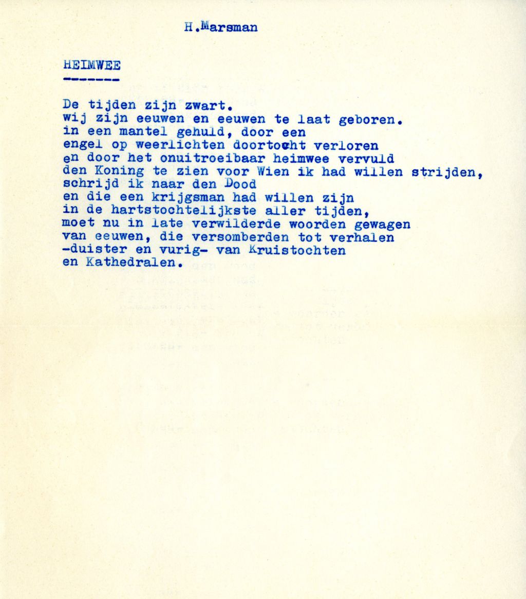 en door het onuitroeibaar heimwee vervuld