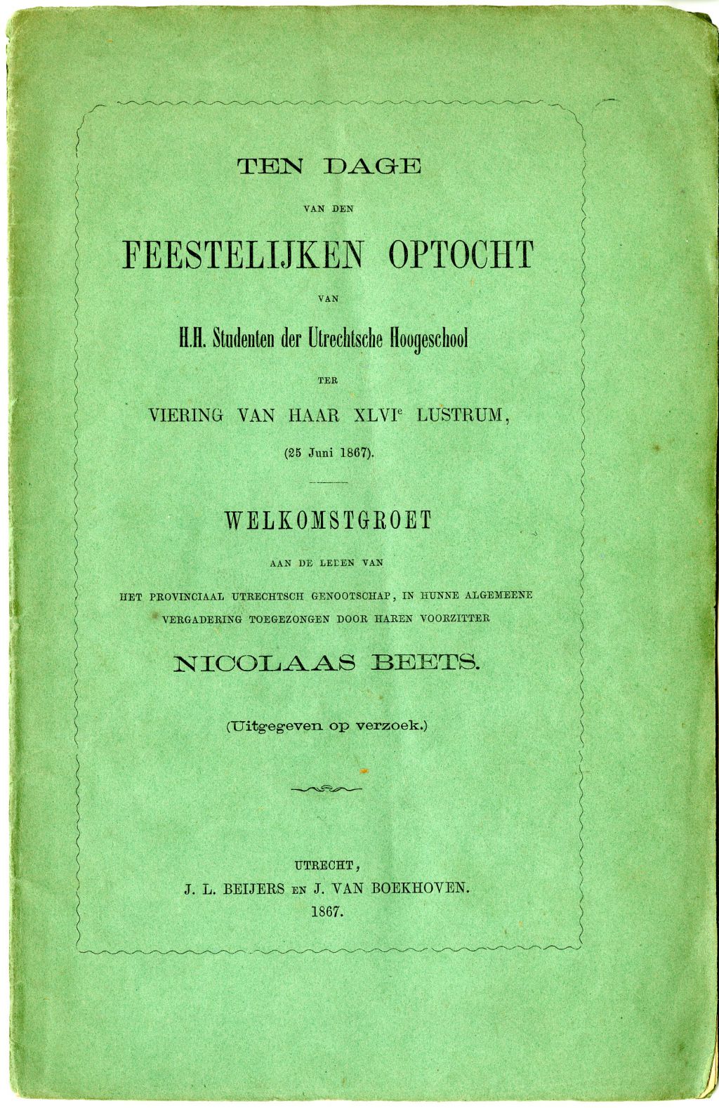 Geen van de vele kringen en kringetjes, waarin ons volk verdeeld is, kan Beets in die mate de zijne heeten, dat een andere het noemen van zijn naam en het verbreiden van zijn lof voor een uitdaging zal houden. Integendeel, zijn naam klinkt als een leus des vredes, en hij zelf is een middelpunt van vereeniging voor lieden, die van alle, soms van tegenovergestelde, zijden komen.