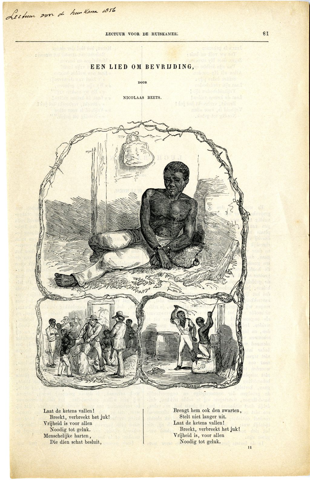 In Nederland raakt Beets zeer bevriend met de aanjager van het maatschappelijk bewogen Réveil, collega Otto Gerhard Heldring, met wie hij in 1848 het Asyl Steenbeek in Zetten opricht voor de opvang van voormalige prostituees. In de jaren vijftig sluit hij zich aan bij acties om de slavernij afgeschaft te krijgen, onder meer met de toespraak ‘De Bevrijding der Slaven’ bij de Nederlandsche Maatschappij tot Bevordering van de Afschaffing der Slavernij in 1856. Datzelfde jaar wordt zijn gedicht ‘Een lied om bevrijding’, eerder verschenen in 1853, herdrukt in het publiekstijdschrift Lectuur voor de Huiskamer, met aangrijpende gravures van geketende en mishandelde slaven.