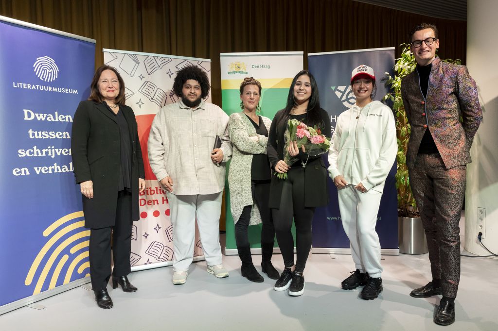 Programmamaker en schrijver Splinter Chabot presenteerde de bijeenkomst en wethouder van Financiën, Cultuur en Economie Saskia Bruines maakte de winnaar bekend en benoemde daarmee Chelsy Valentina tot de eerste Jonge Stadsdichter van Den Haag.