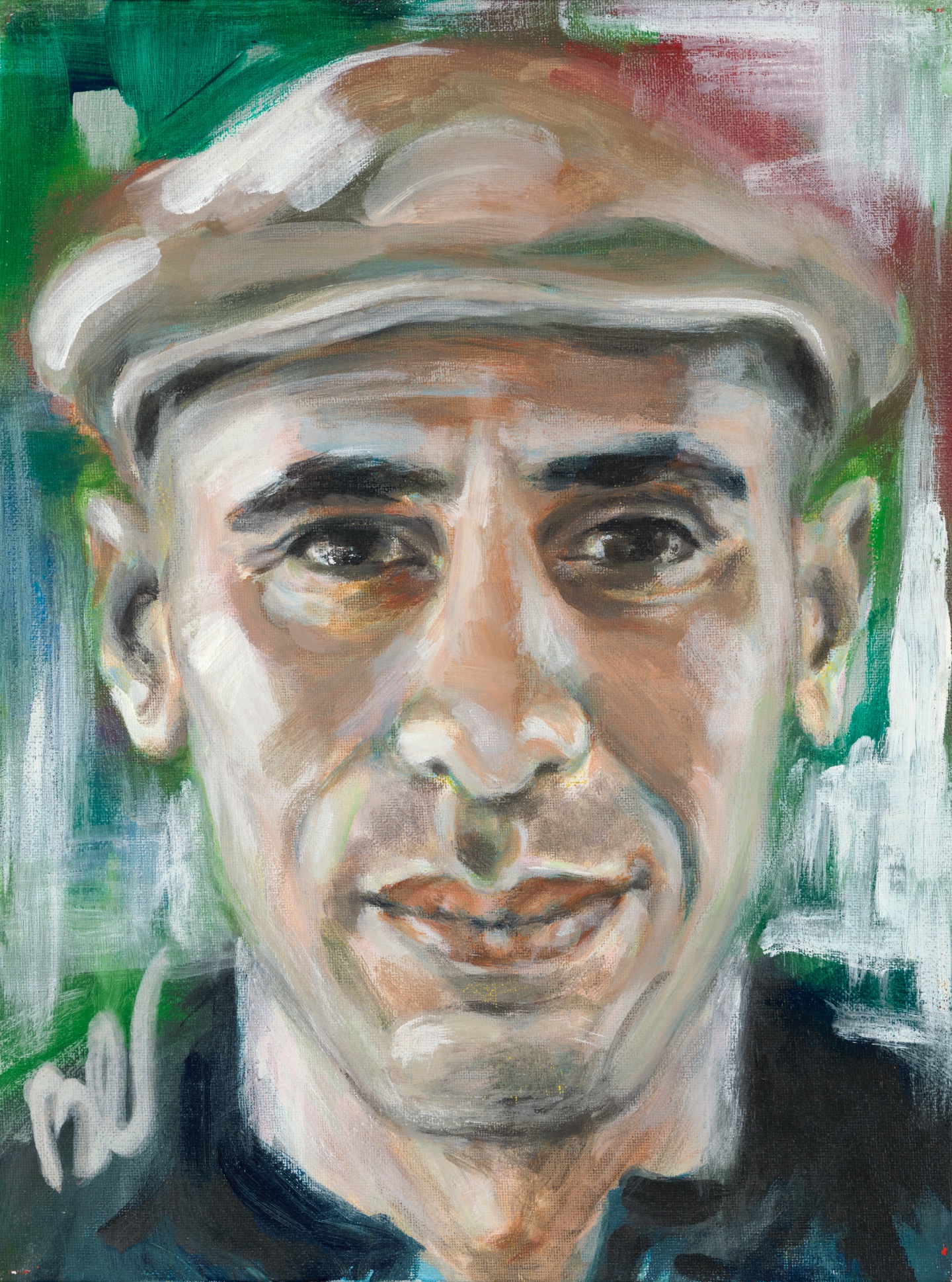 Hij is intuïtief in zijn denken, maar exact in zijn uitvoering. Hij denkt narratief, vanuit associaties komt hij tot een afgewogen beeld. Hij koos hier voor een ingekeerde Benali, niet de expressieve. Sidi zoekt naar de auteur in de persoon, iemand die ergens anders is met zijn gedachten, het gezicht trekt daarin mee. Heel mooi. Voor mij is Sidi de schilder van het wezenlijke.