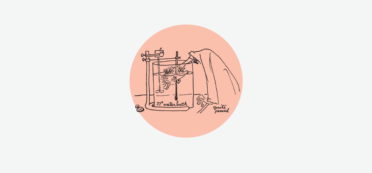 Tijdens zijn studie genoot hij vooral van het werken met de microscoop: ‘De nieuwe wereld waarin hij mij toegang beloofde.’ In vakanties nam hij het ding mee naar zijn ouderlijk huis. Om er slootwater mee te bekijken. En te zien hoe de planten en diertjes die erin rondkropen honderdmaal vergroot veel weg hadden van ‘de wildernis van Afrika’. Minder leuk waren de practica waarvoor dieren doodgemaakt moesten worden. Zoals de keer dat hij, om de reflexen van kikkerpoten te bestuderen, de kop van de kikker moest afknippen, waardoor de gootsteen in het practicumlokaal zich vulde met ‘halve hoofdjes die elkaar verbaasd min of meer aanstaarden. (…) ik ril nu nog van het nutteloze trappelen van die lange lieve kikkerpoten’.