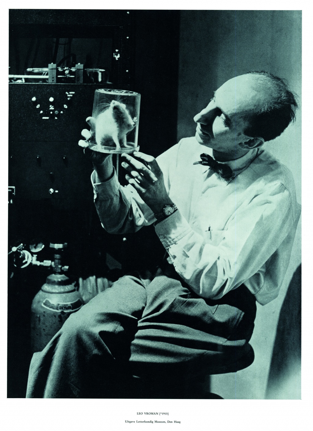 Vroman wil werken met de zogeheten ‘ellipsometer’. Maar het duurt lang voor het apparaat er is, en om geen tijd te verdoen fabriceert hij eigenhandig andere ‘hulpmiddelen’: ‘Laat niemand je ooit vertellen dat het nodig is te wachten op een of ander toestel ofzo: er is van alles te bedenken waar je alleen maar een touwtje met een knoop en een stukje ijzerdraad voor nodig hebt. Bij wijze van spreken.’ (Warm, rood, nat en lief, 1994)